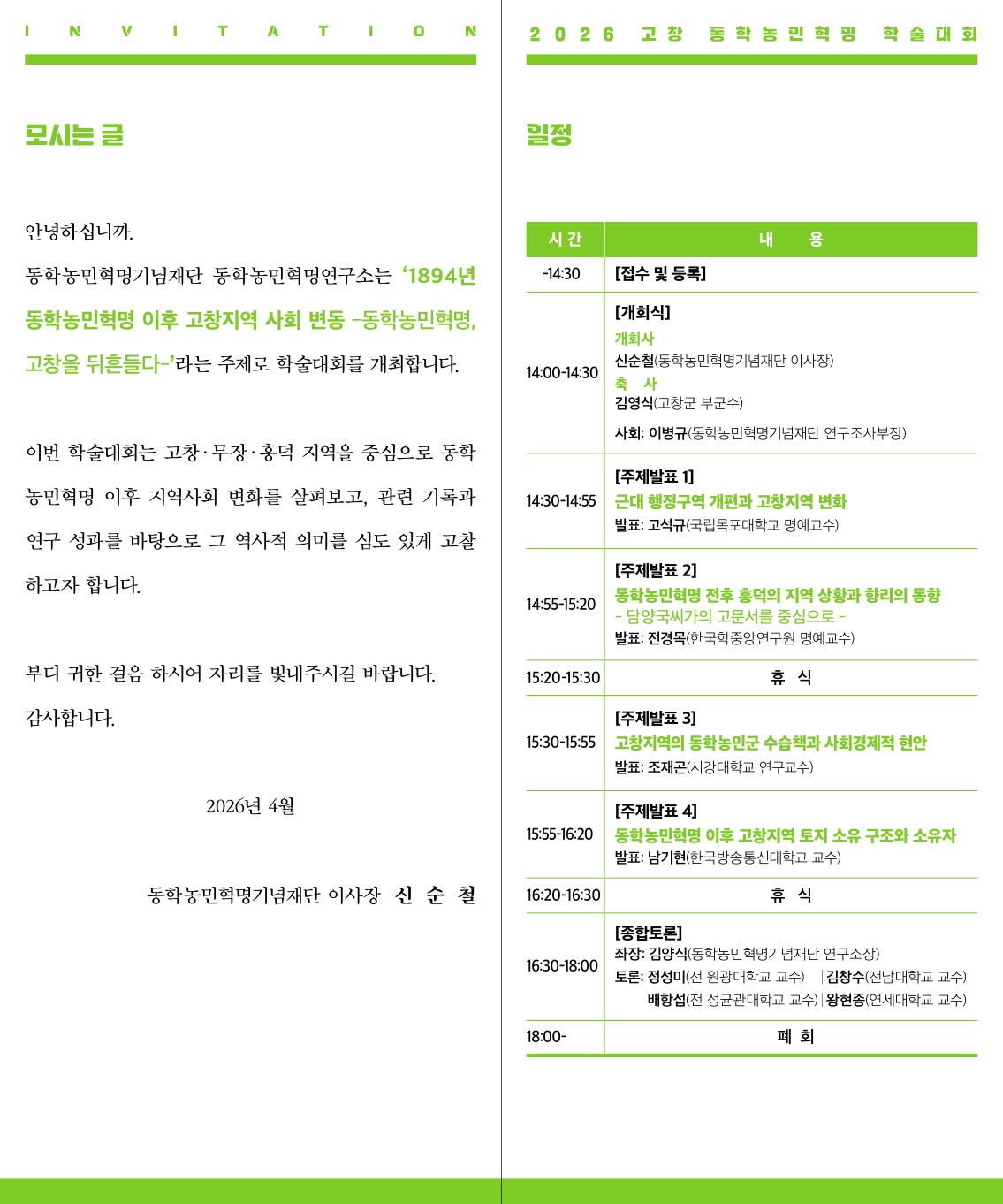 2026 고창 동학농민혁명 학술대회 개최 행사