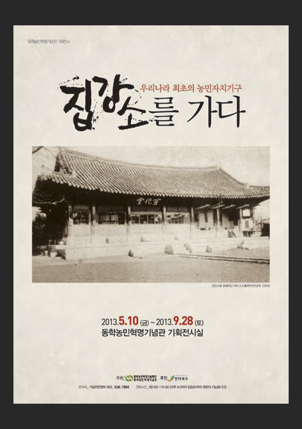 본 전시는 ‘관민상화의 산물’ 또한 ‘오늘날 지방자치기구의 원형으로 평가받고 있는 집강소’에 담긴 동학농민군의 굳건한 의지와 단단한 주체성을 느낄 수 있도록 구성되었습니다.