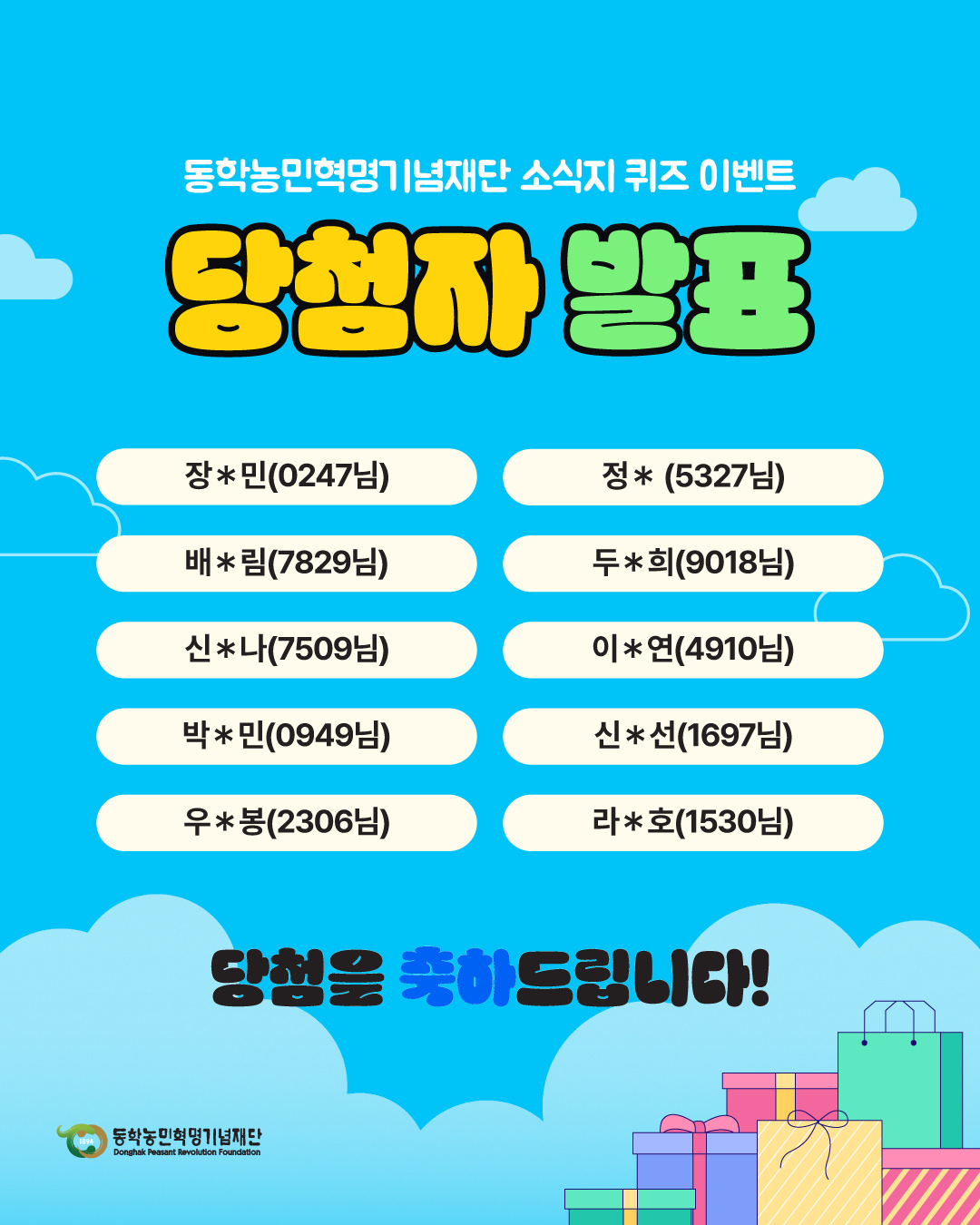 동학농민혁명기념재단 소식지 퀴즈 이벤트 당첨자 발표 공지