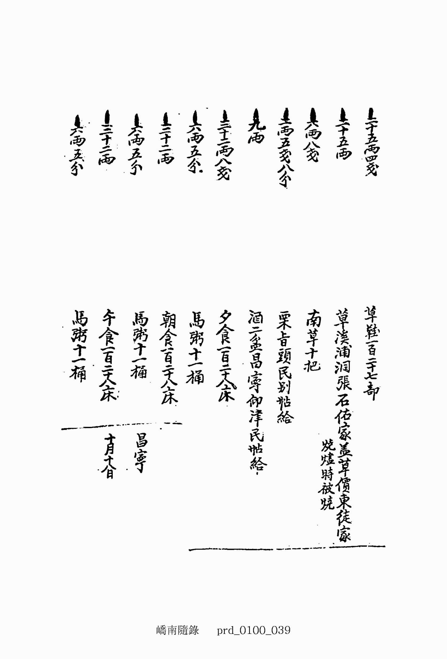六兩五分 馬粥十一桶--昌寧 十月十八日