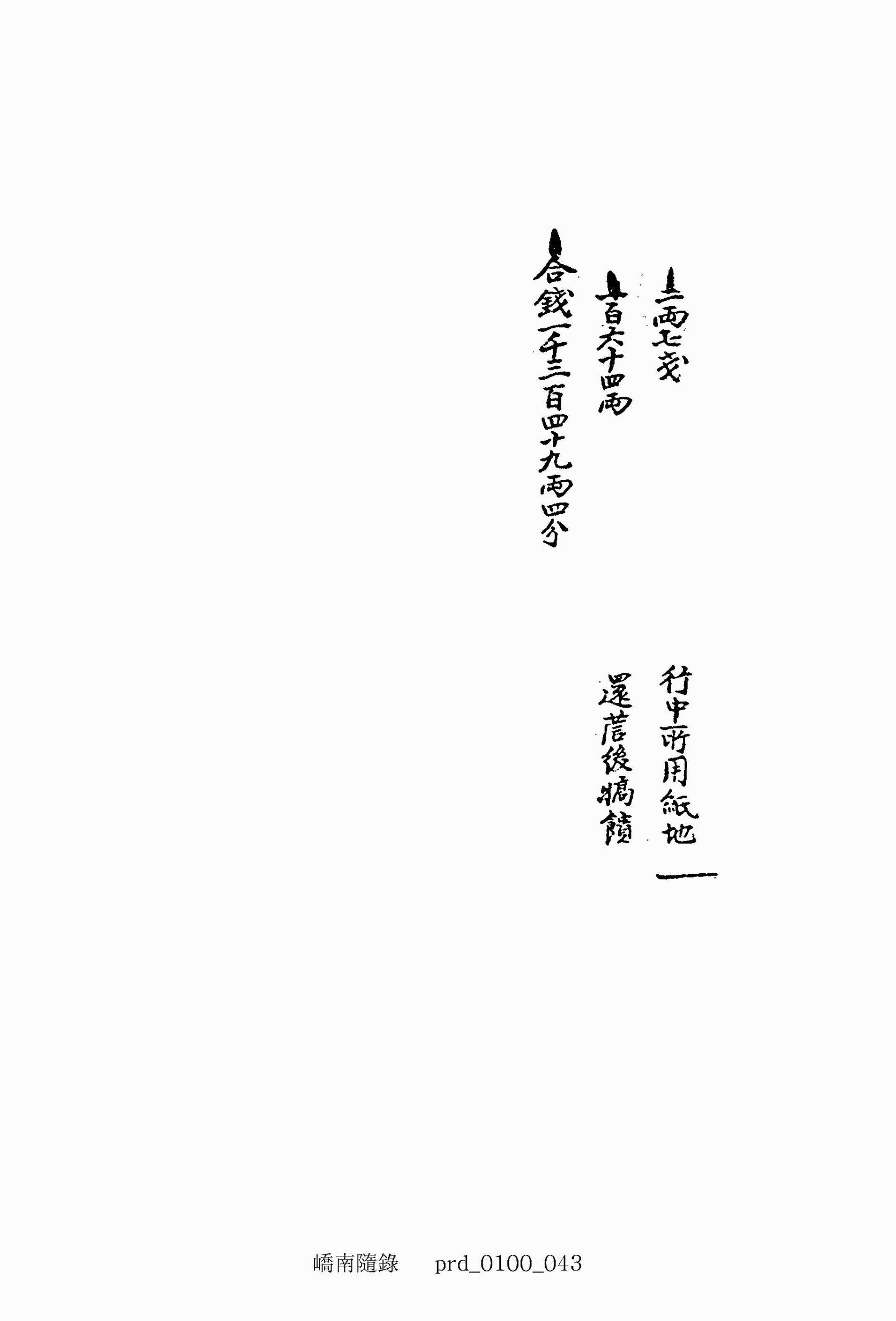 錢五十六兩七錢 白木九疋價兵丁火兵一百四名裏