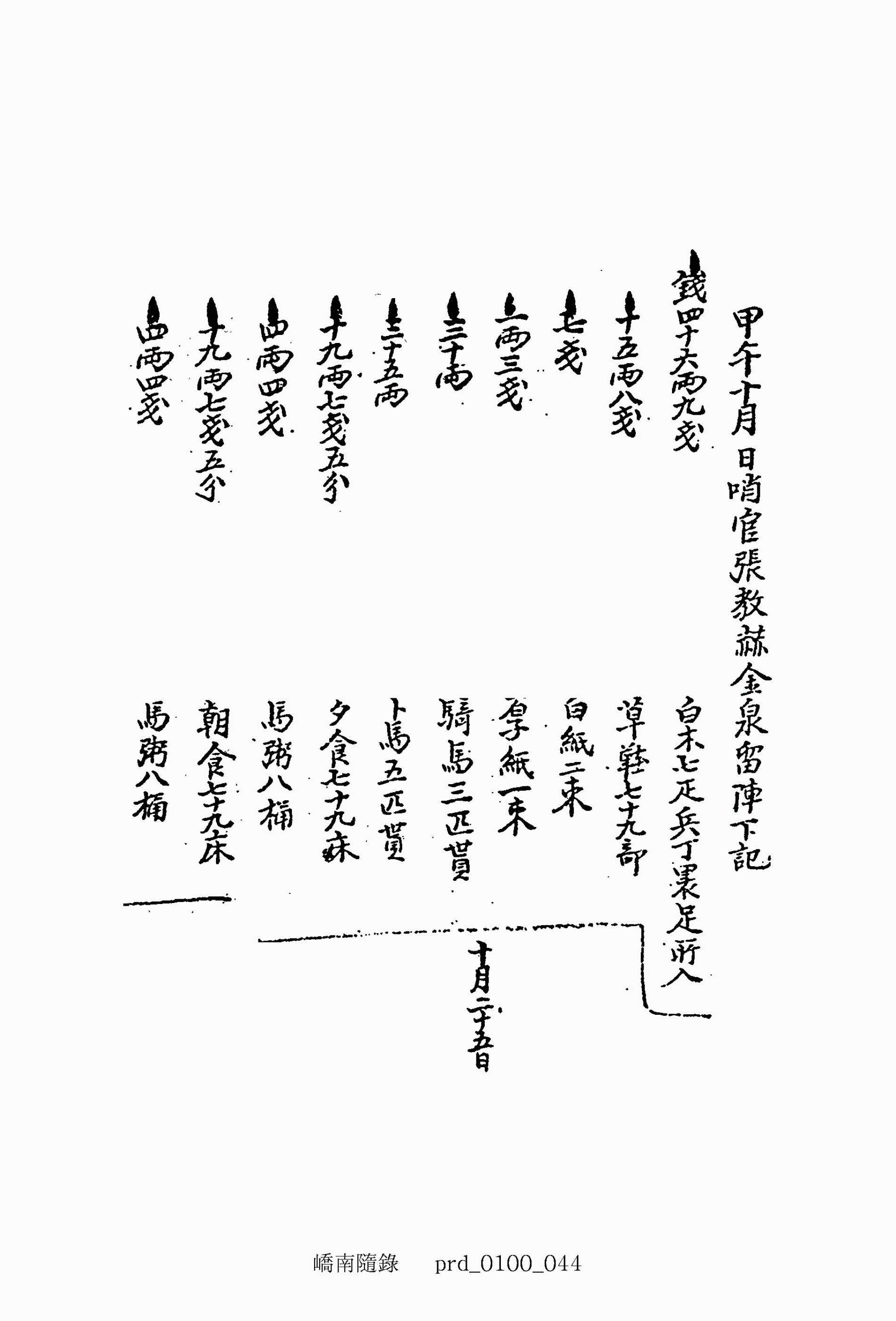 甲午十月 日哨官張敎赫金泉留陣下記