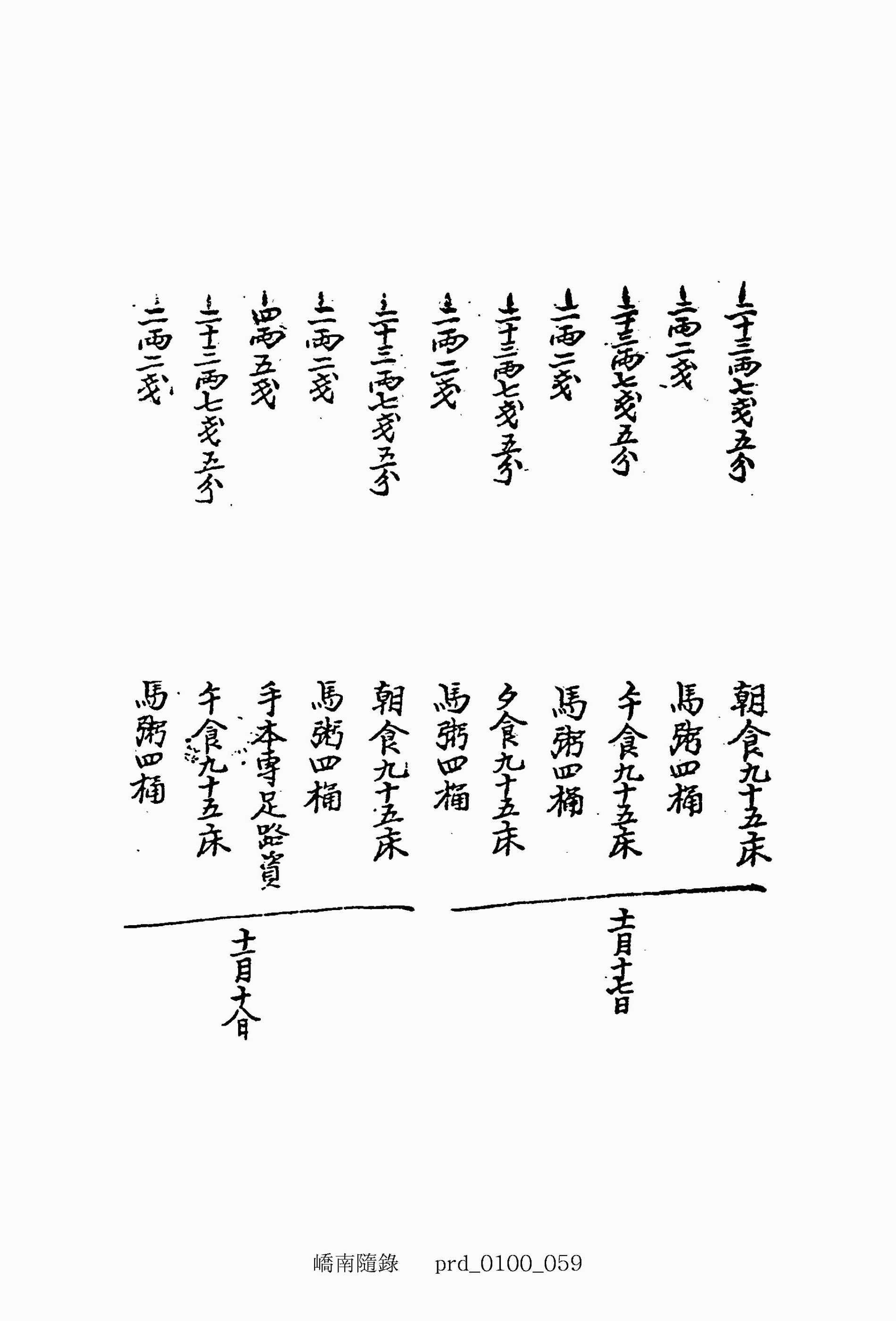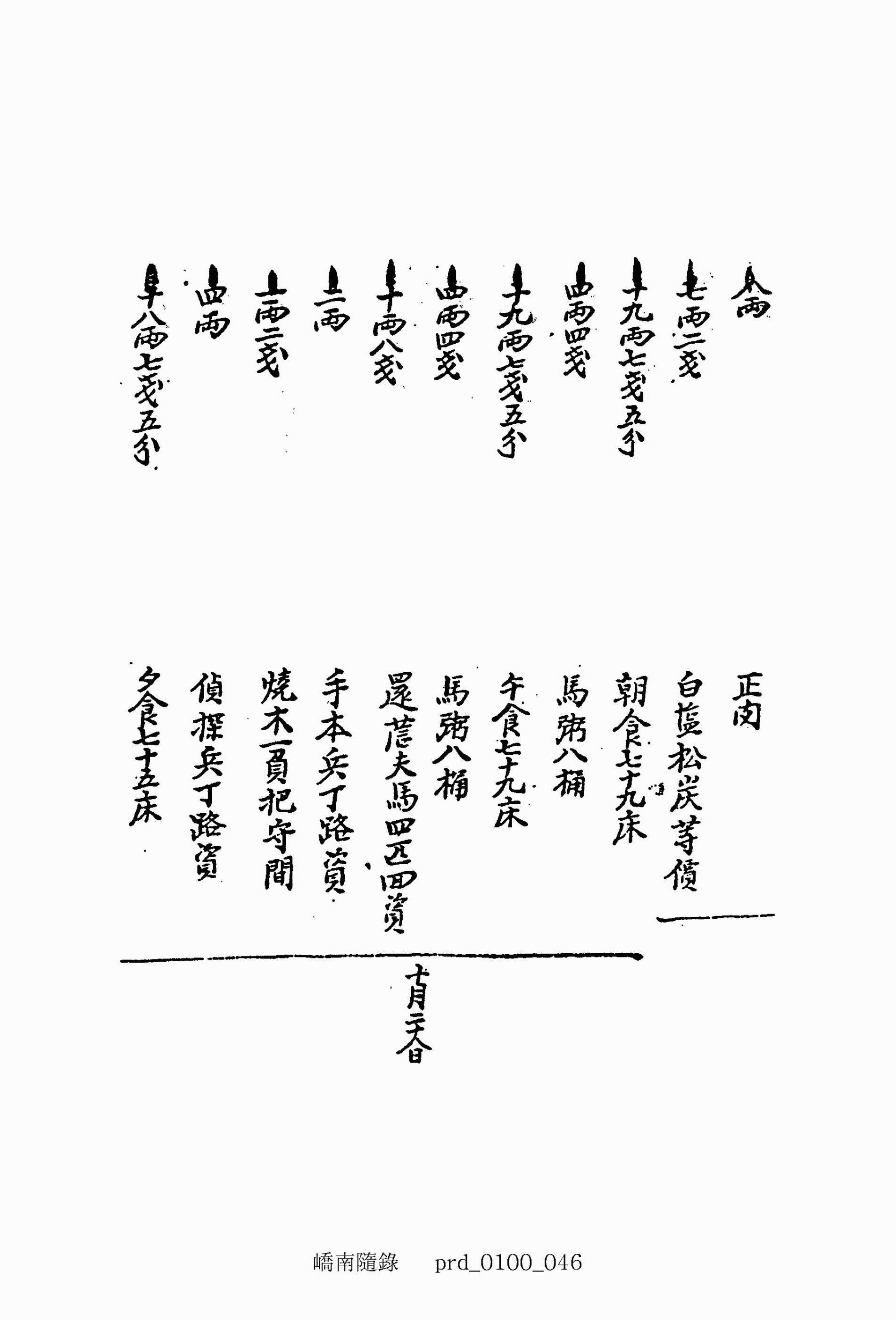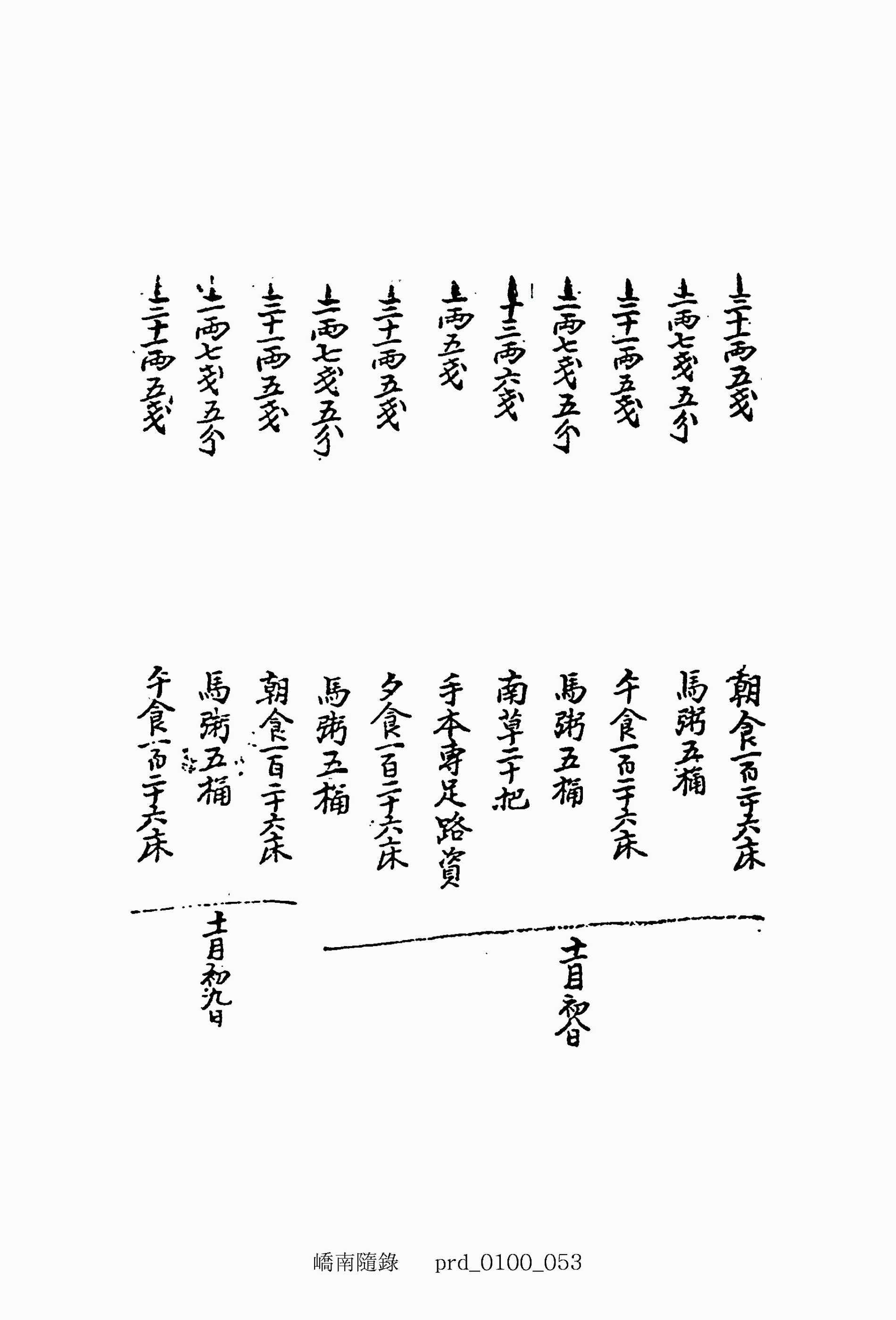 二十三兩七錢五分 夕食九十五床