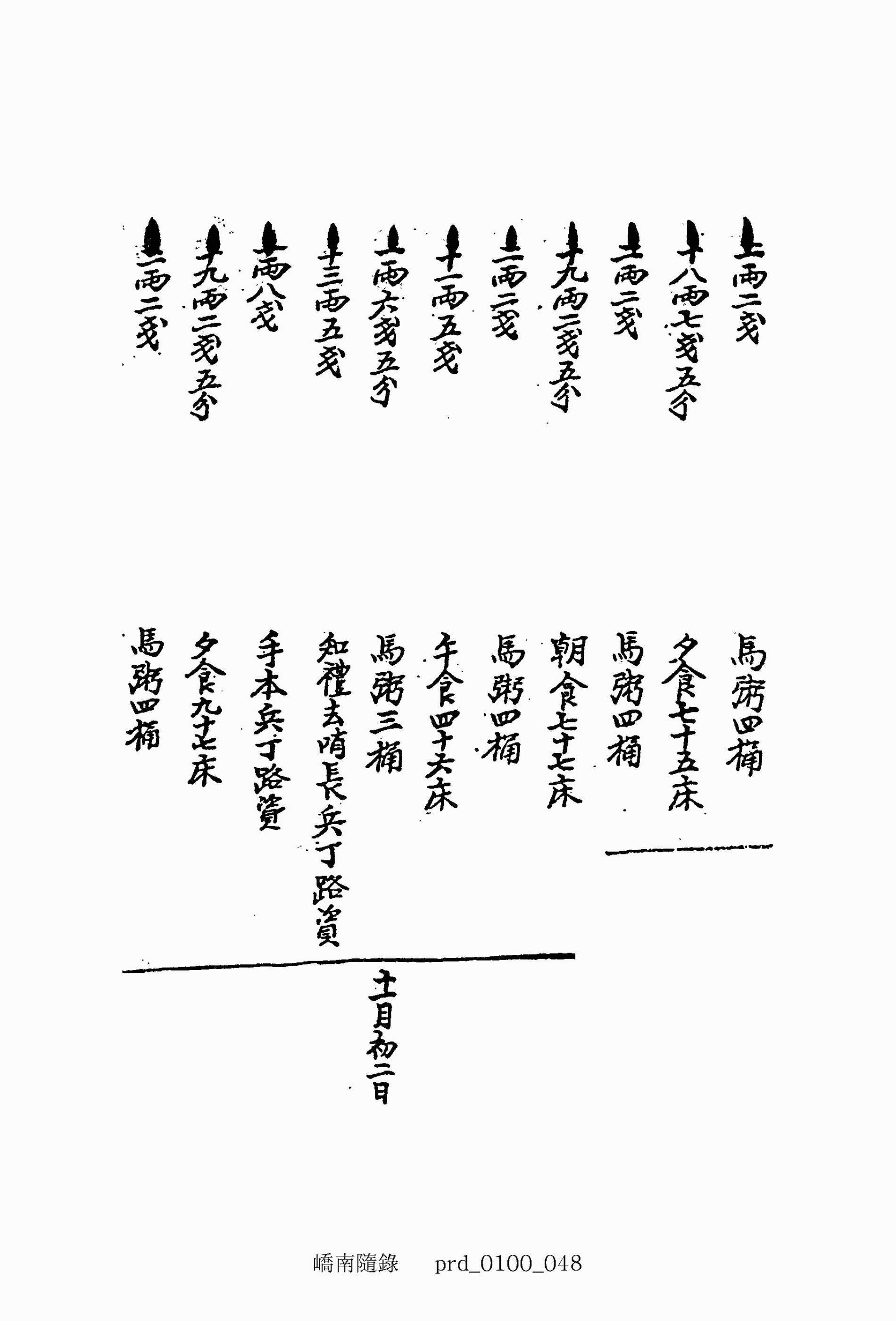 二兩七錢五分 馬粥五桶-十一月初十日