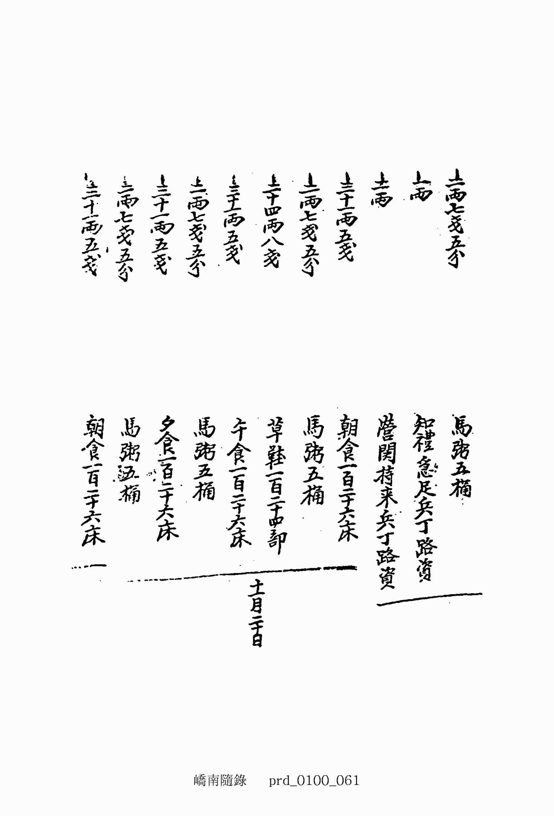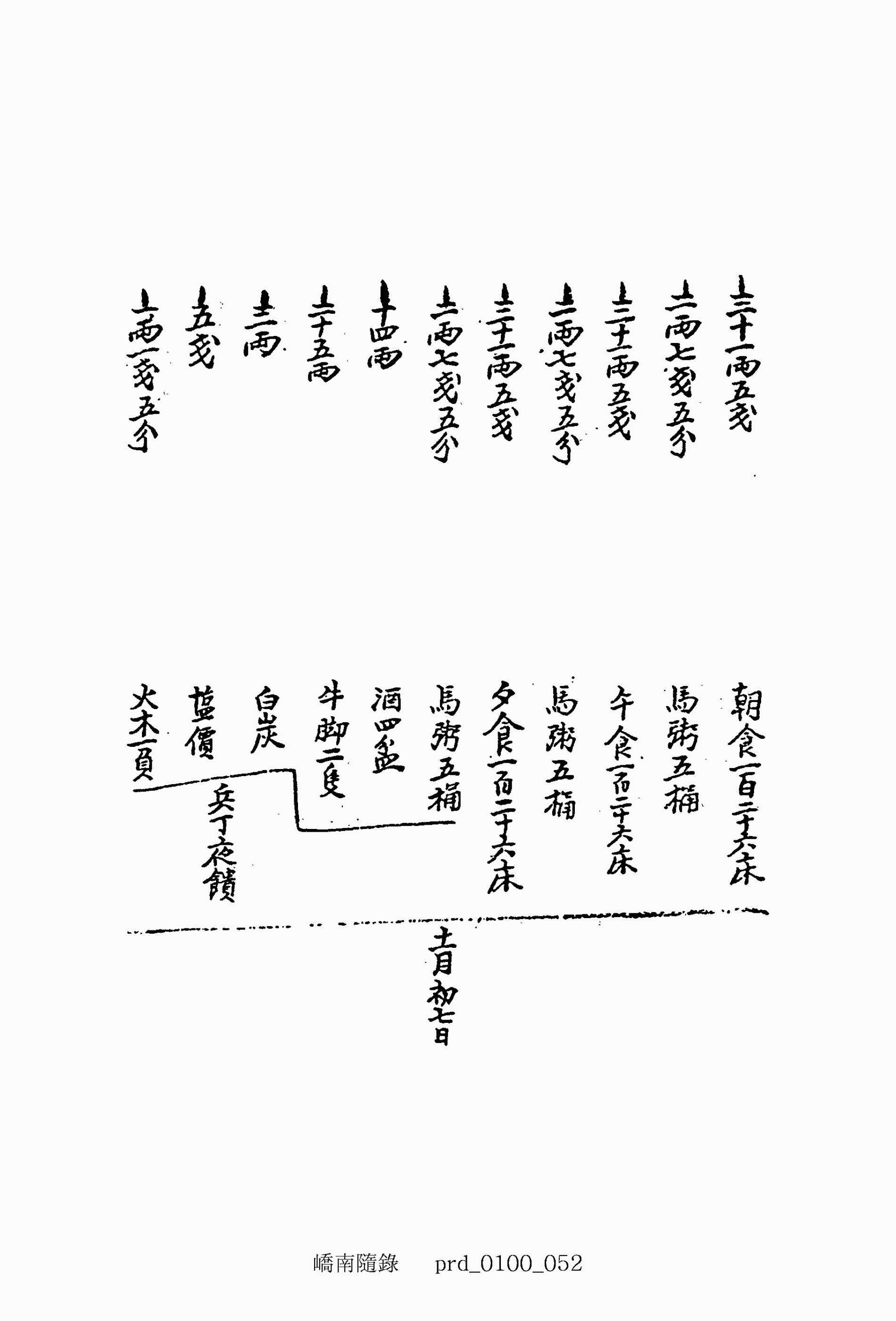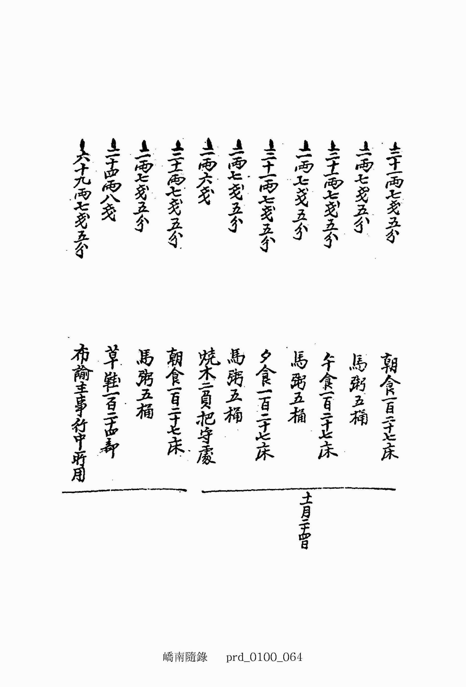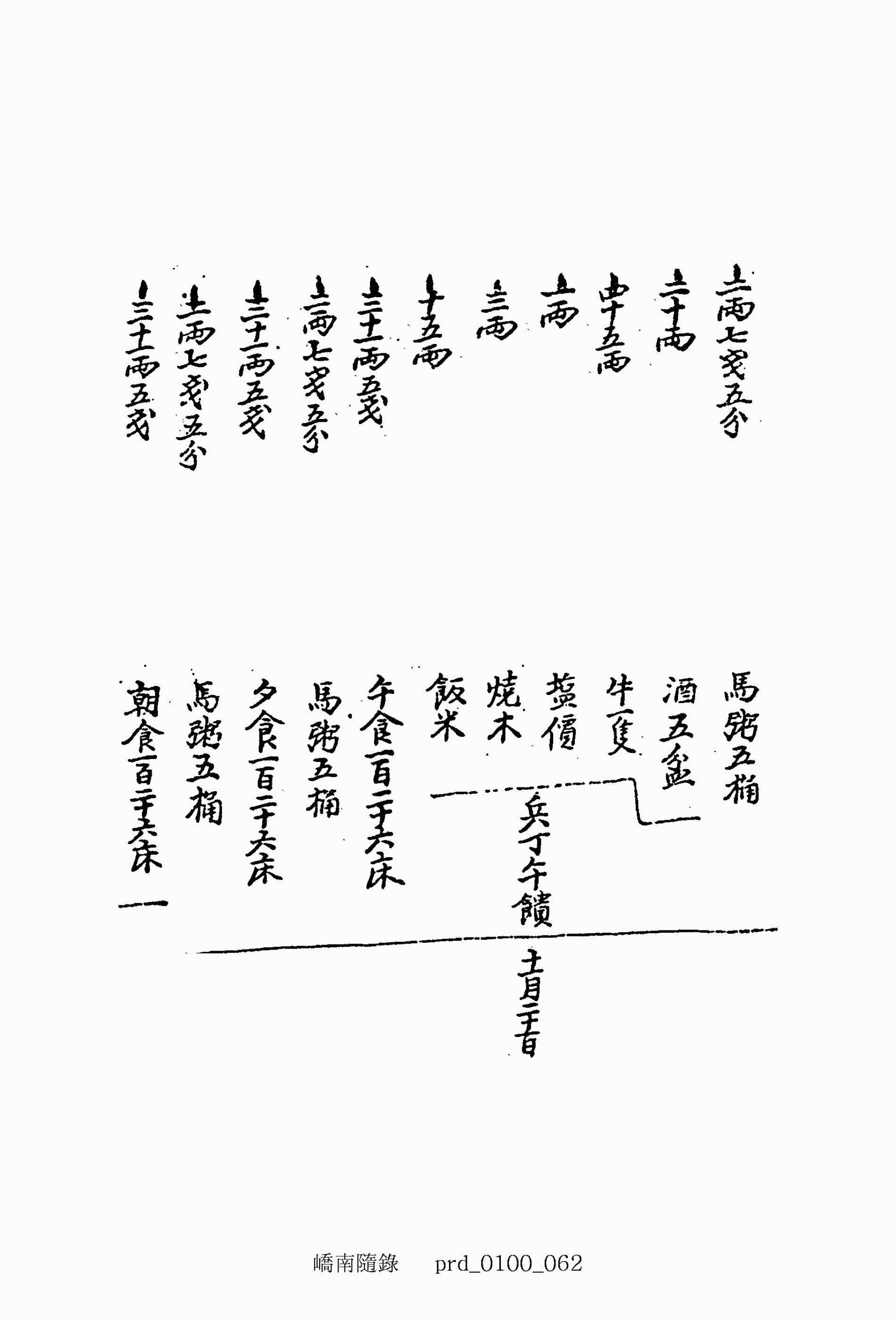 三十一兩七錢五分 夕食一百二十七床