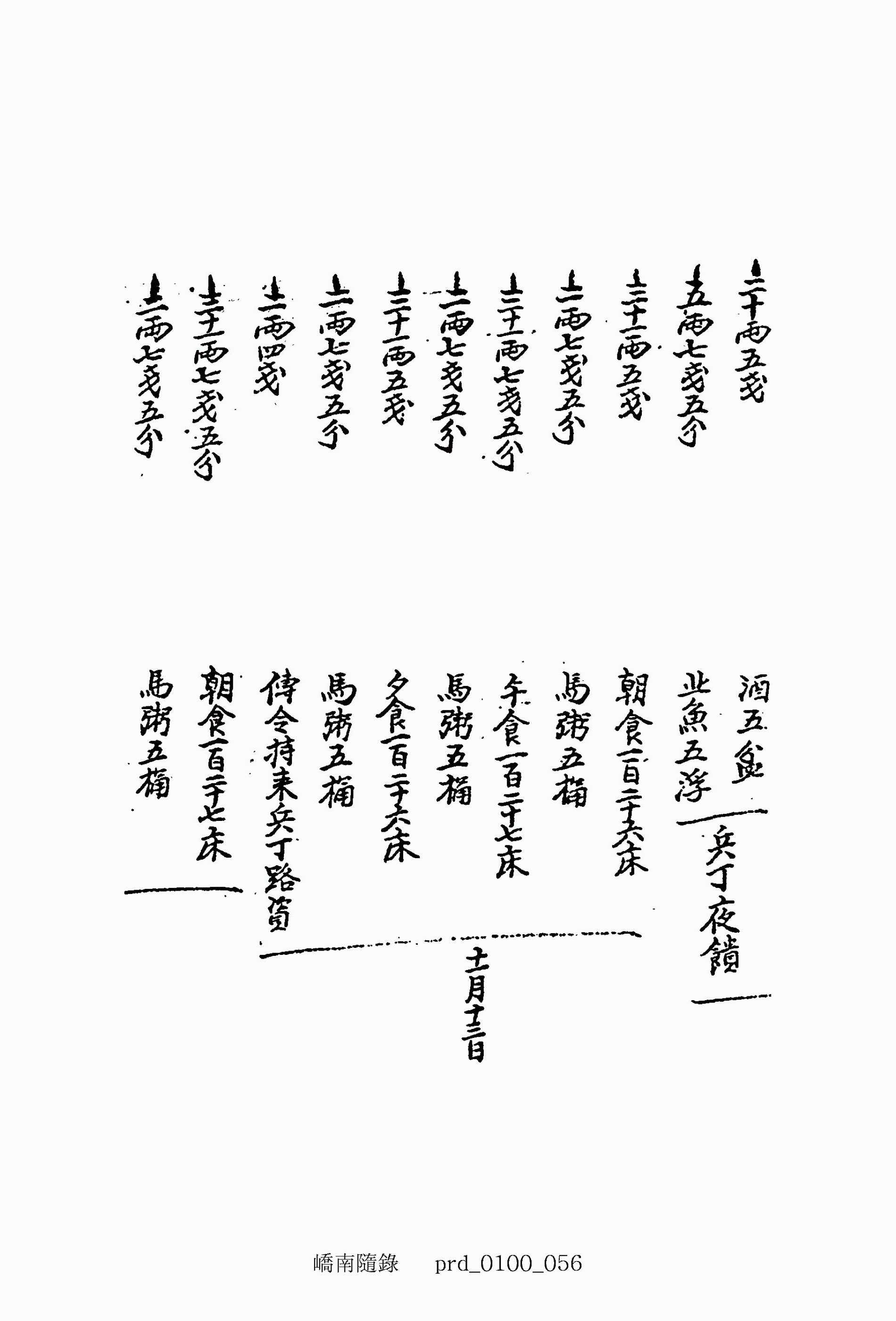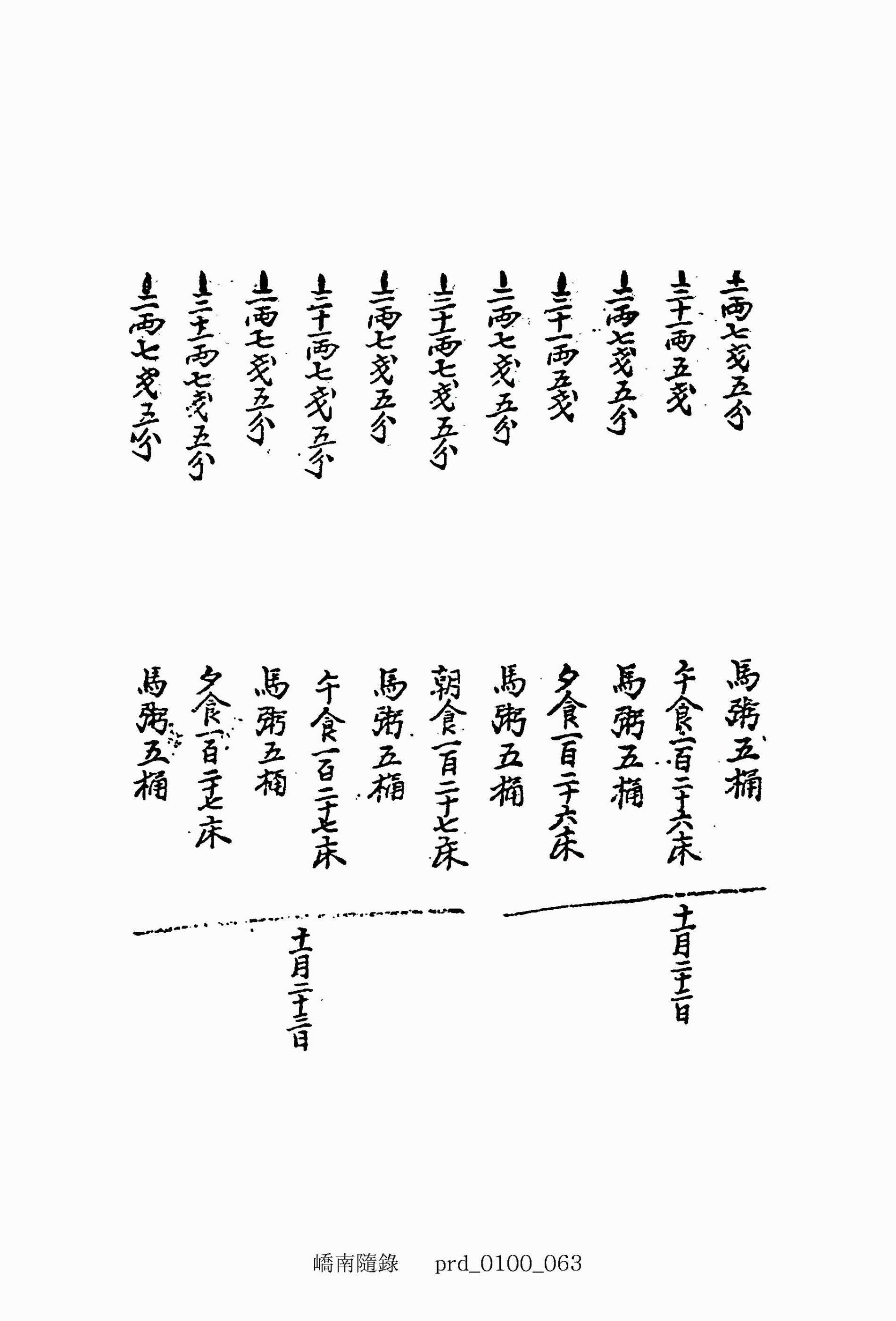 二兩七錢五分 馬粥五桶--十一月初七日
