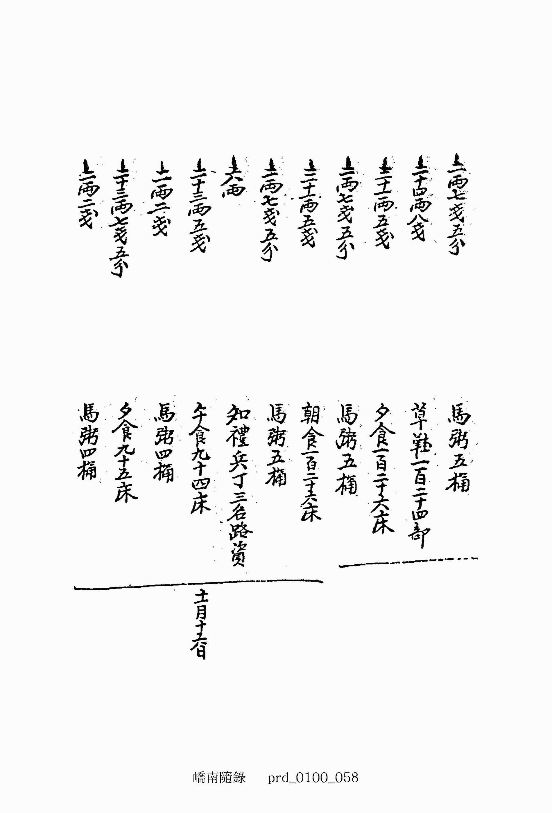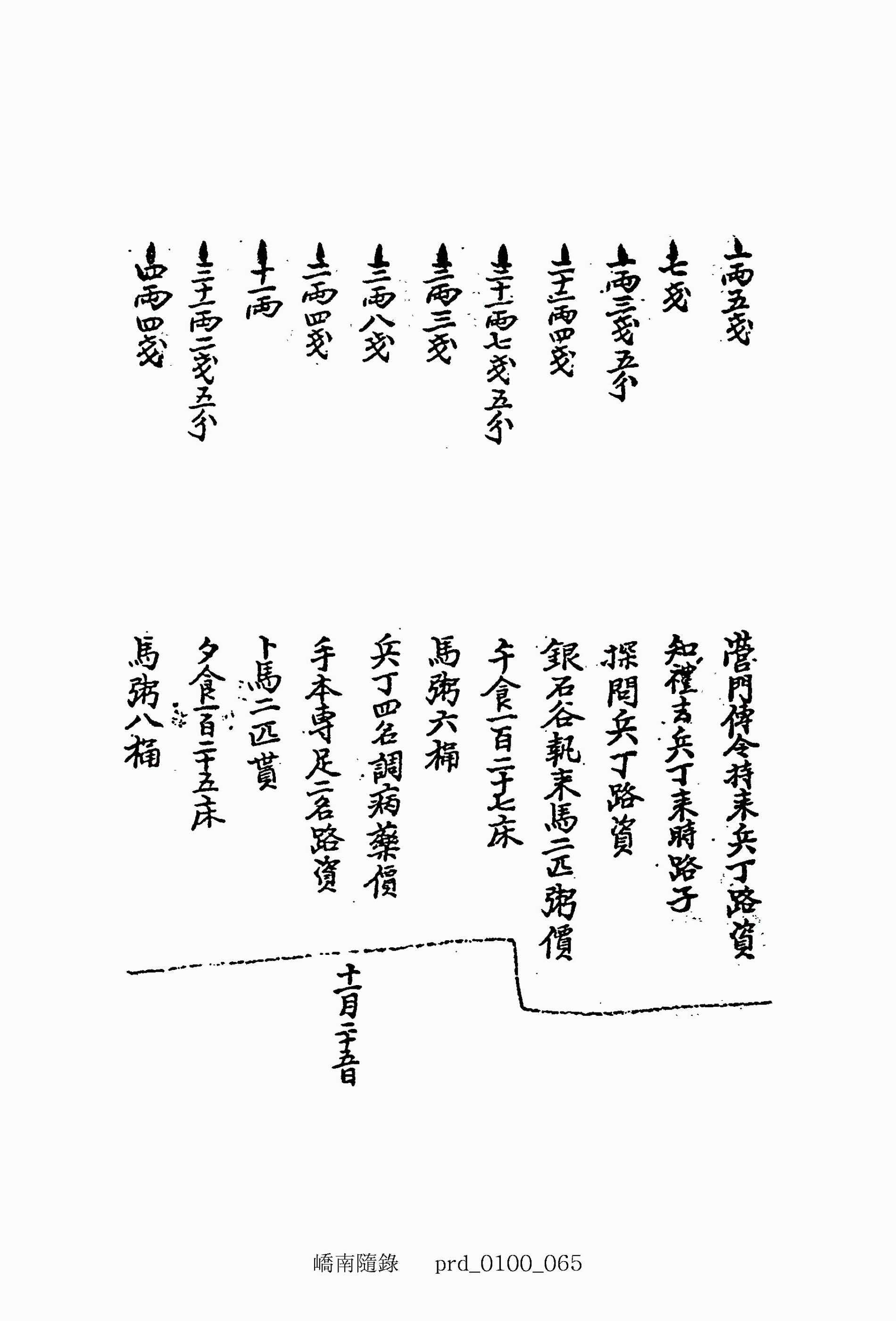 三十一兩二錢五分 夕食一百二十五床