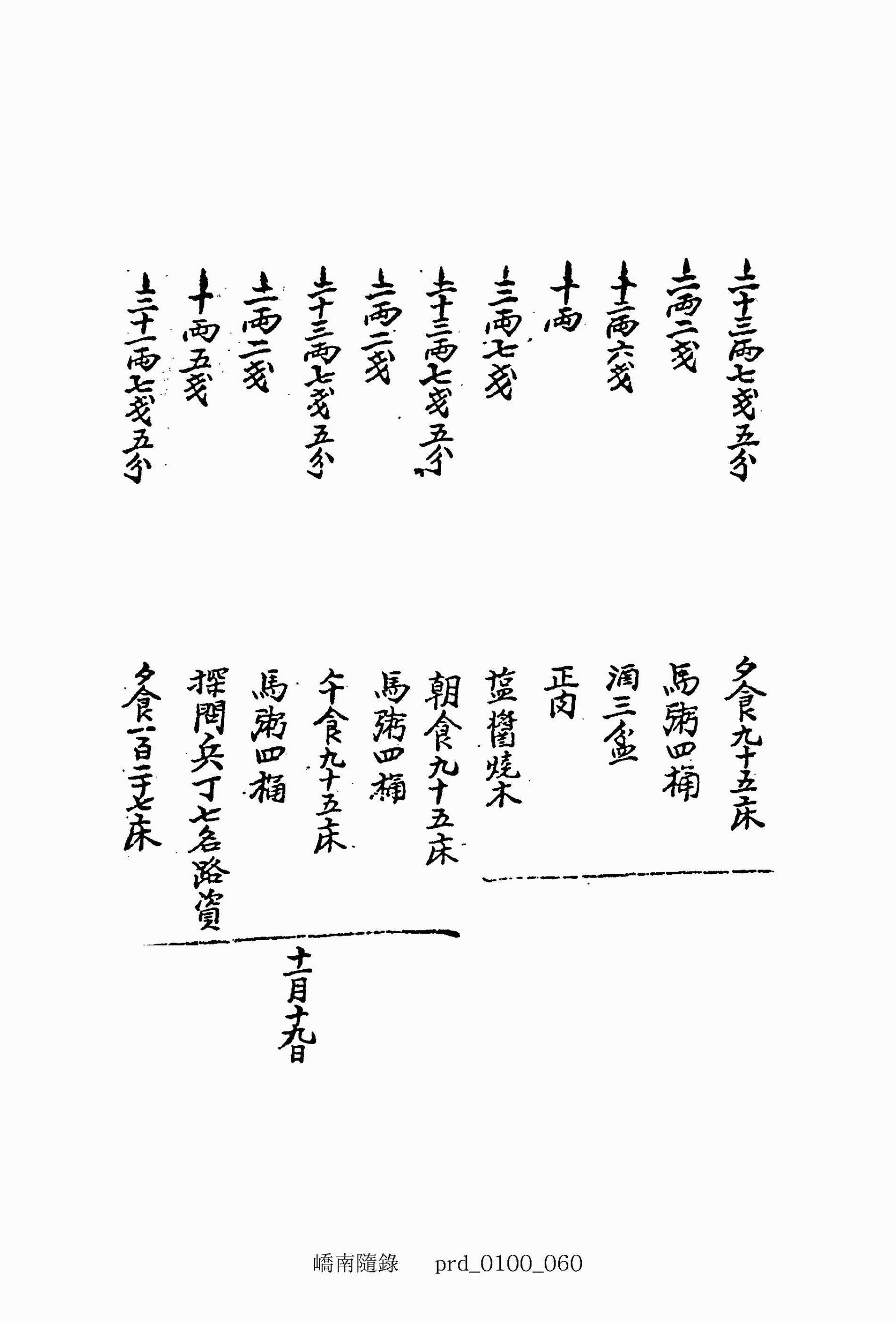 十八兩七錢五分 夕食九十五床