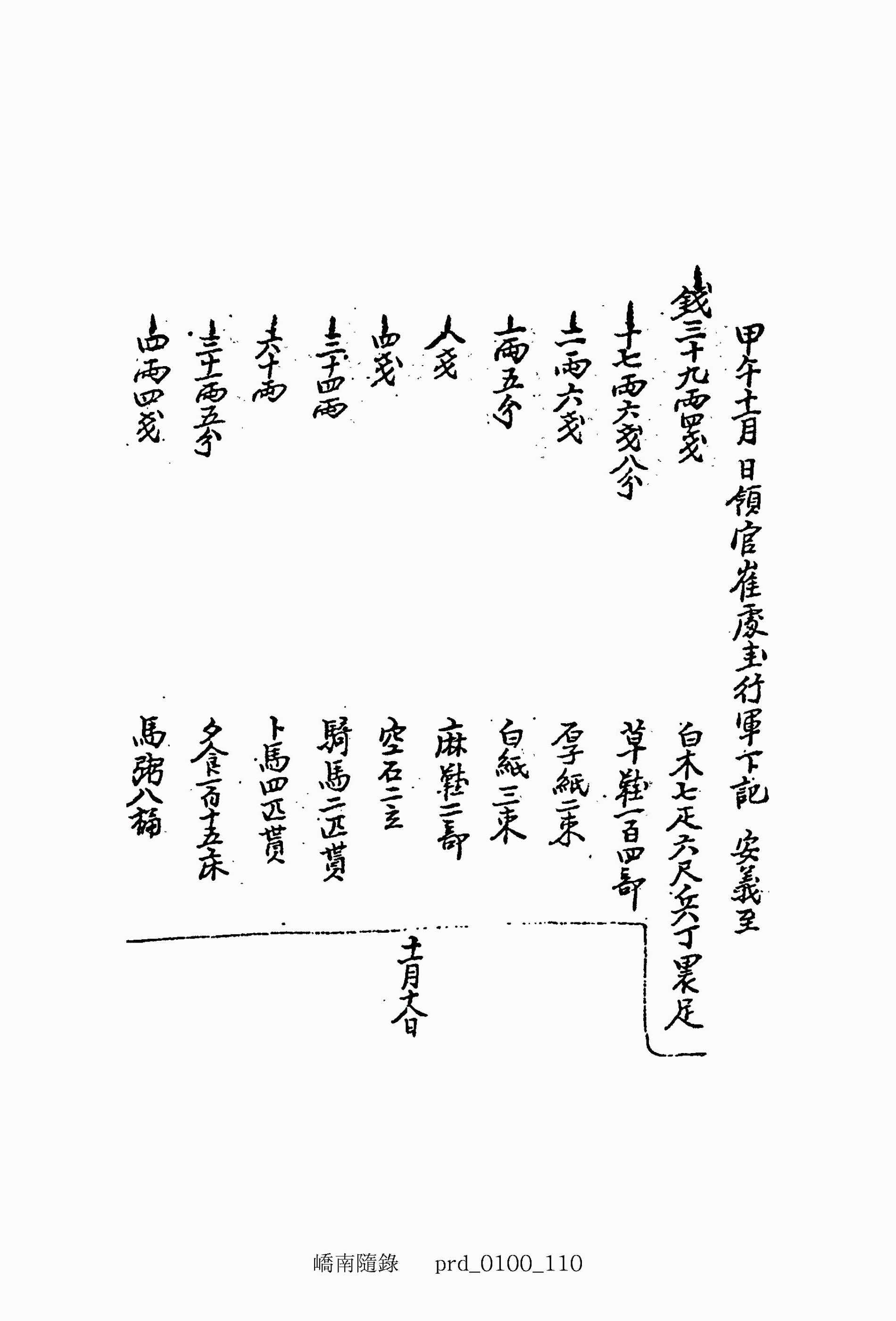 甲午十一月 日領官崔處圭行軍下記 安義至