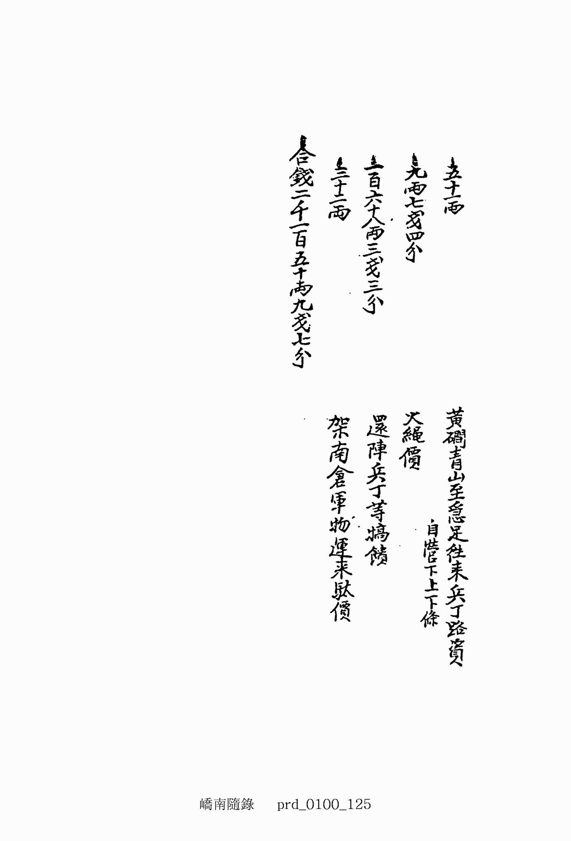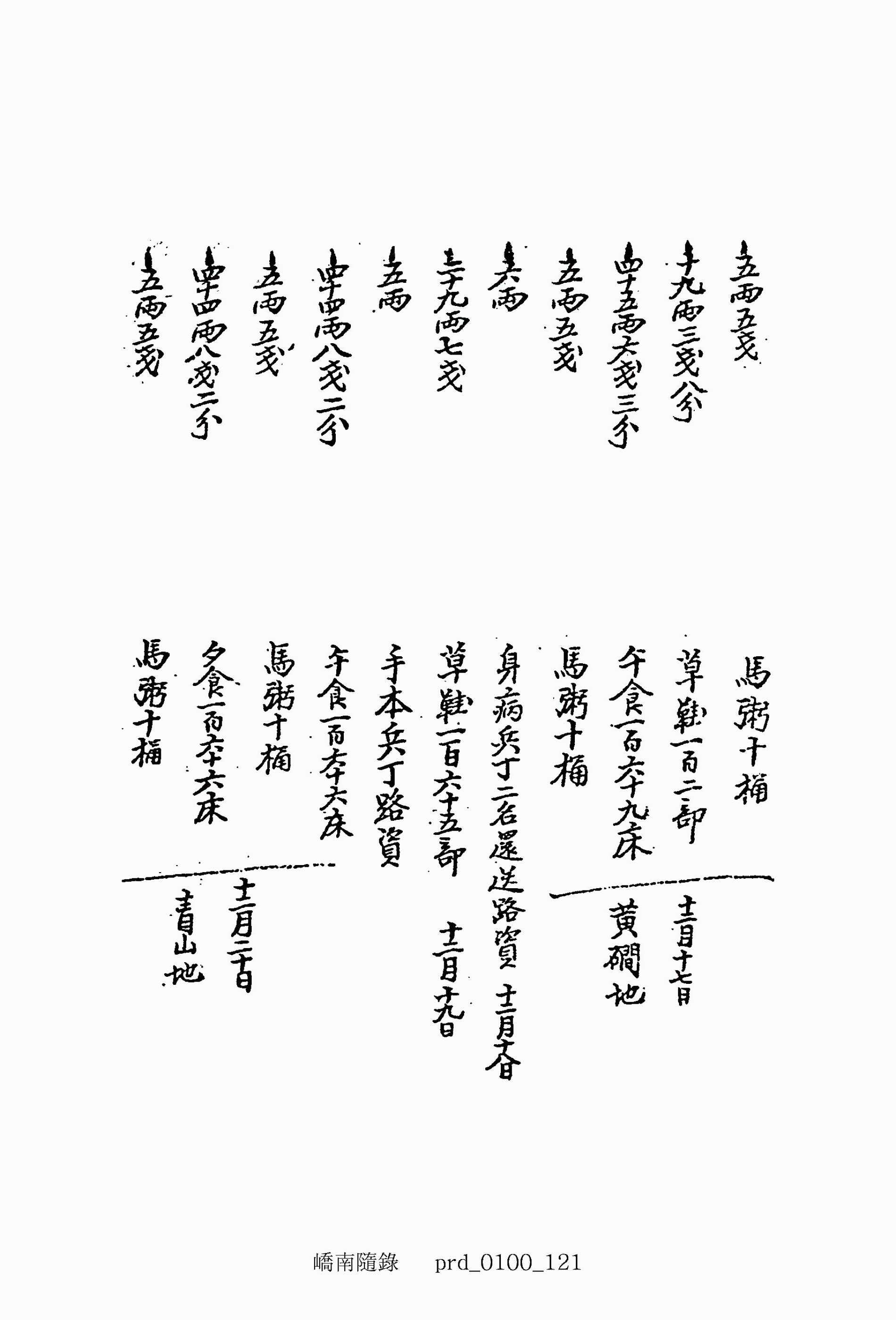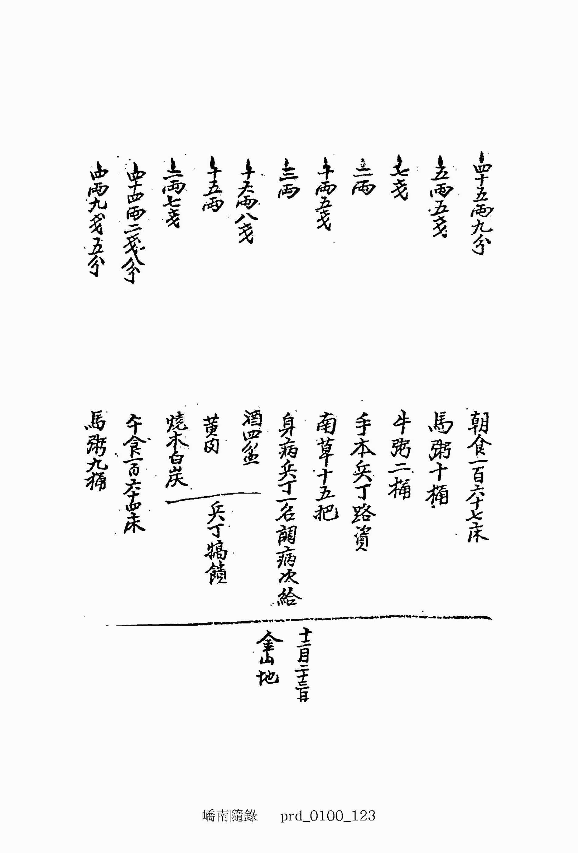 二兩五錢 燒木二負-明日踰嶺次兵丁犒饋