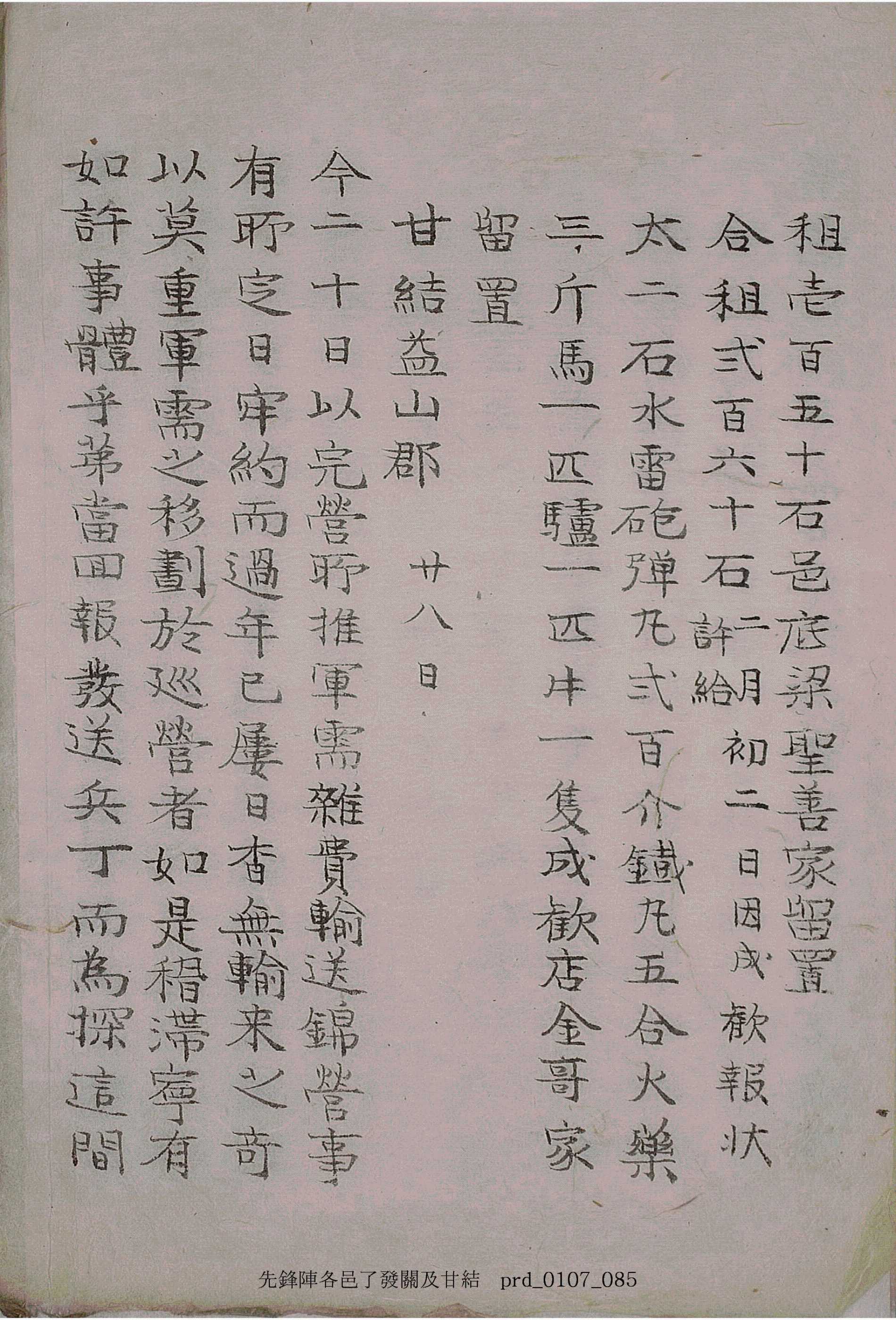 甘結公州鎭營 昨冬留駐營下時所捉匪類家所搜穀物與雜 後 租八石十一斗銃十四柄鎗四十九柄 公州山幕李龍石家