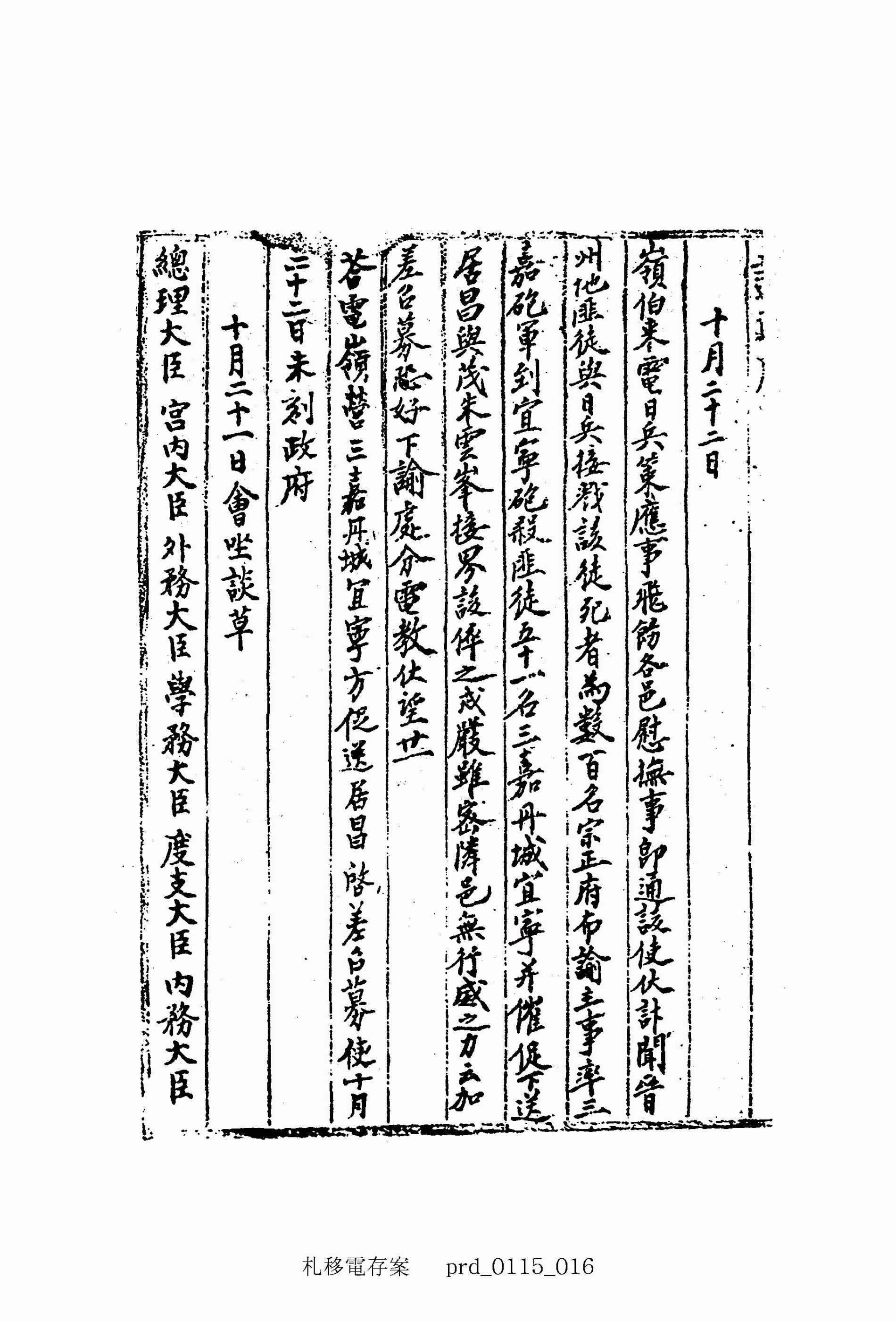 總理大臣 宮內大臣 外務大臣 學務大臣 度支大臣 內務大臣