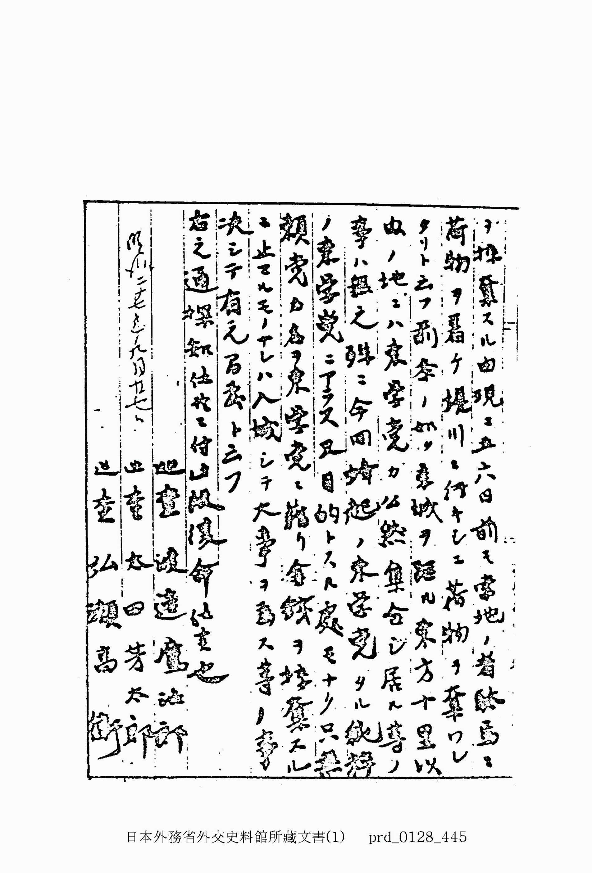 今般京畿道松波地方ニ於テ多數之東學黨 明治廿七年九月二十八日 別紙寫