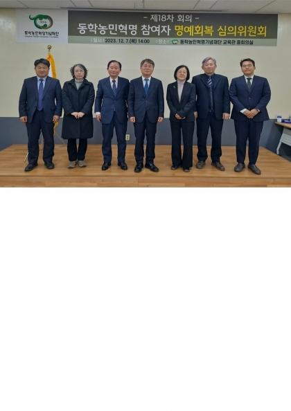 2023년 12월 7일 동학농민혁명기념재단 교육관에서 제18차 동학농민혁명 참여자 명예회복심의위원회가 개최되었다. 이날 동학농민혁명 참여자 및 유족등록 신청서 33건이 상정되었고, 이중에서 참여자 30명과 유족 1명을 심의·의결하였다. 이에 따라 현재까지 등록이 확정된 참여자는 3,815명이며, 유족은 13,176명이다.이날 회의에는 신순철(동학농민혁명기념재단 이사장) 위원장을 비롯하여 구선희(전 국사편찬위원회 편사연구관), 김춘성(천도교 교서편찬위원), 배항섭(성균관대 교수), 주영채(사단법인 동학농민혁명유족회장), 이해돈(문화체육관광부 문화정책관(代 이수원 전통문화과장)) 위원이 참석하였다.