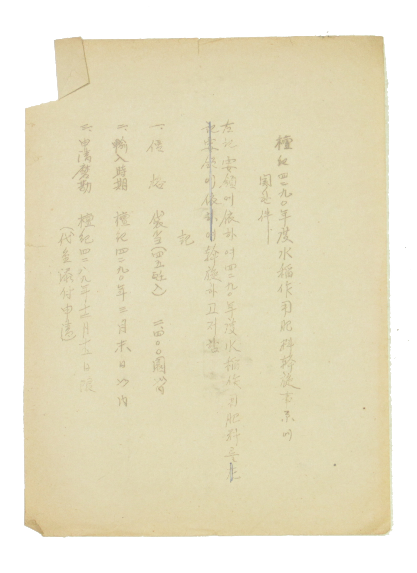 단기4290년도 수도작용 비료 알선사업에 관한 것