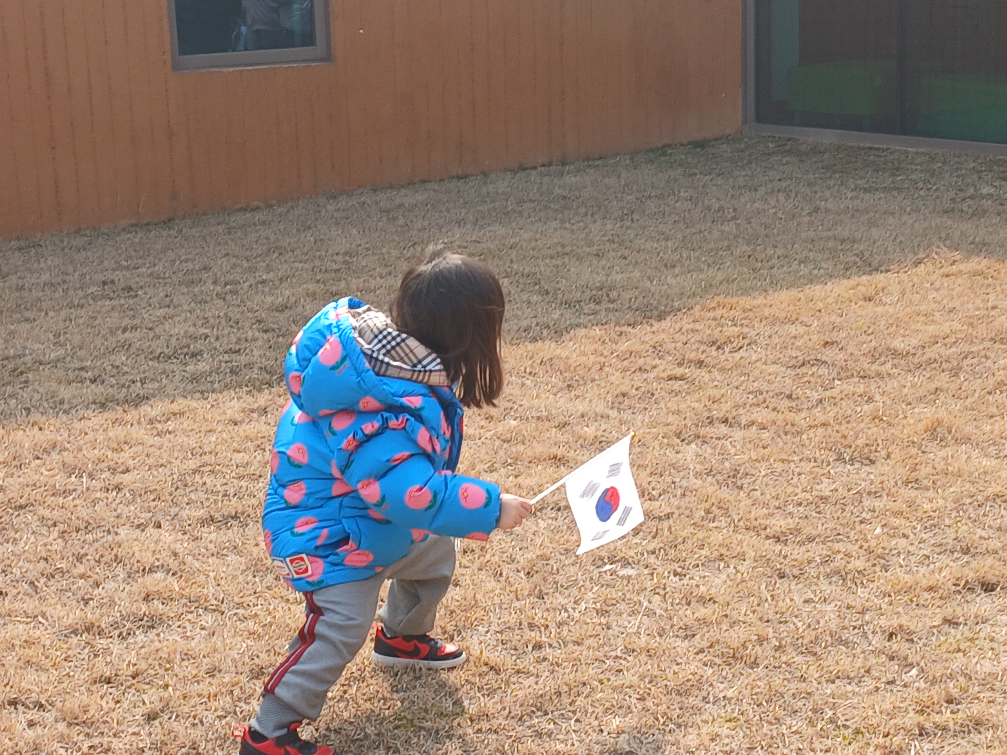 ▣ 교육내용: 좋아하는 동물과 자기소개 하기, 3.1절 영상 보기, 태극기 만들기, '대한민국만세'놀이, 무궁화 꽃이 피었습니다. 등