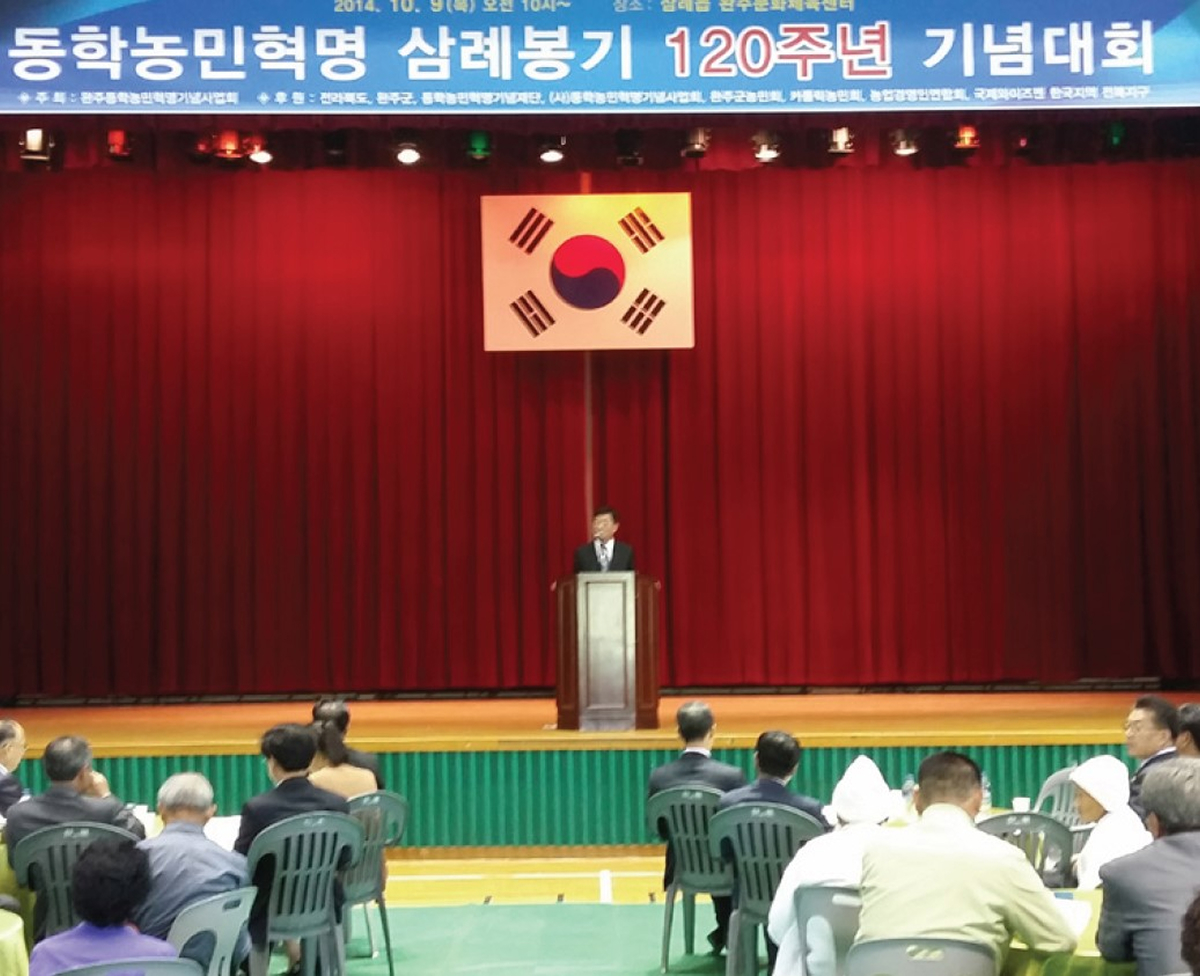 지난 10월 9일(목) 완주 삼례봉기 역사광장에서 동학농민혁명 삼례봉기 120주년 기념대회가 열렸다. 완주동학농민혁명기념사업회의 주최로 개최된 이번 행사는 박성일 완주군수, 정성모 완주군의회 의장, 완주군의회 의원 등 500여명이 참여하였으며, 전주⋅완주 초등학생들의 사생대회와 120주년 기념식에 이어 윷놀이, 제기차기 등 가족이 함께 모여 즐길 수 있는 행사가 이어졌다.