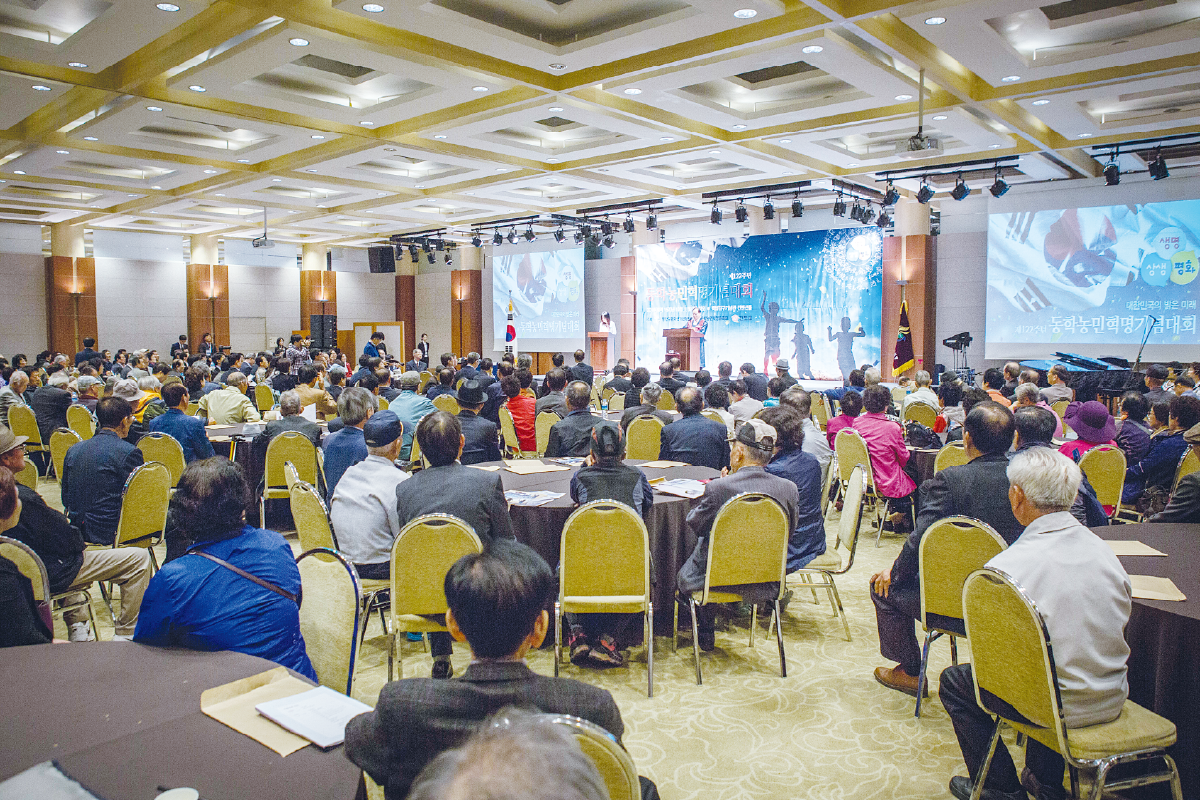 동학농민혁명기념재단, 전국동학농민혁명유족회, 천도교중앙총부가 공동주최로 지난 10월 11일(화) [제122주년 동학농민혁명기념대회]를 백범김구기념관에서 개최하였다. 정관주 문화체육관광부 차관, 유성엽 국회 교육문화체육관광위원회 위원장, 한광옥 국민대통합위원장, 김생기 정읍시장, 이이화 前역사문제연구소장 등 내외귀빈 500여 명이 참석하였다.