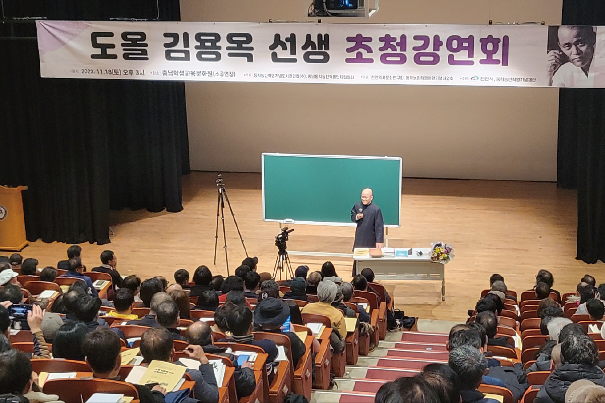 2023년 11월 18일 충남학생교육문화원에서‘도올 김용옥 선생 초청강연회’가 열렸다. 목천판 동경대전 간행 140주년을 기념하고, 천안 동학농민혁명 기념 도서관 건립의 성공적인 추진을 염원하는 의미에서 열린 이번 행사는 동학농민혁명기념도서관건립추진위원회와 충청남도 동학농민혁명단체협의회가 주최하고, 천안역사문화연구회와 천안 동학농민혁명기념사업회가 주관하였다. 오전과 오후로 나뉘어 진행된 이번 행사는 세성산 위령비, 목천판 동경대전 및 용담유사 간행 터 등 천안지역 동학농민혁명 관련 유적지를 답사하고, ‘목천판 동경대전과 동학농민혁명’이라는 주제로 초청강연회가 이어졌다. 강연회 종료 후 참가자 300여 명의 의지를 담아 ‘천안 동학농민혁명 기념 도서관 건립제안서’ 발표하였다.