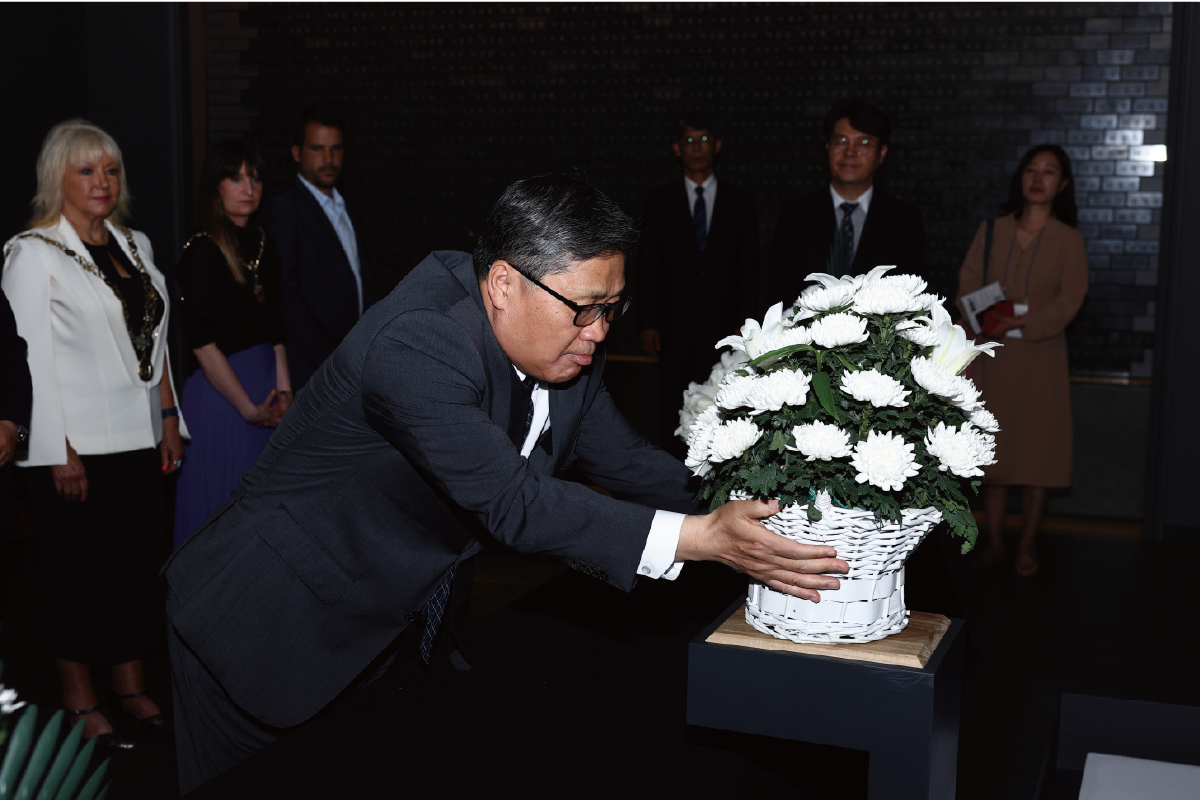 제129주년 동학농민혁명기념식은 동학농민혁명 참여자들의 위패와 무명 동학농민혁명군의 넋을 기린 상징시설물이 설치된 추모관에서 동학농민혁명 참여자 영전(靈前)에 헌화(獻花)하는 것으로 시작하였다.