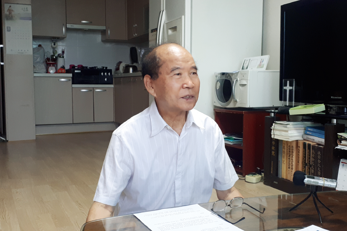 답) 할아버지께서 전북 부안군에 계시면서 활동하셨는데 동학농민혁명이 실패한 후 부안을 떠날 수밖에 없었다고 합니다. 그래서 충청도 계룡산, 보은으로 거주지를 옮기셨다고 합니다. 그렇게 피해 다니시다가 나중에는 논산 은진에 정착하셨는데, 그때는 이미 가세가 크게 기운 건 말할 나위 없지요. 제가 3살 때 아버지가 돌아가셨고, 거기다가 제 장형까지 일찍 돌아가셔서 형편이 많이 어려웠습니다. 저는 형제자매가 누님이 7명, 남자 형제가 명 이렇게 해서 총 13명인데 저는 아들로는 다섯 번째이고 순서로는 열 두 번째입니다. 장형은 복막염으로 돌아가셨고, 둘째 형은 6.25로 전사하셨고, 셋째 형은 3년 전에 병사하셨습니다. 그리고 제 위로 형님과 동생만 현재까지 살아있습니다. 셋째 형님은 청량리에서 잘 사셨는데 사실은 이복형제입니다. 제게는 어머니가 3분이 계십니다. 저를 낳아준 어머니께서 삼형제를 낳으셨는데, 다른 형제들은 타지로 떠나고 저만 끝까지 논산 은진에 남아 어머니를 모시고 농사일을 했습니다. 저는 형편이 어려워서 사실은 중학교도 입학하지 못했습니다. 제 2살 위로 형님이 계시는데 호적상으론 1살 차이입니다. 형님은 중학교 진학을 했지만 저까지 학교에 보낼 형편이 안 되어 저는 초등학교만 졸업하고 한학을 공부했습니다. 학교는 얼마 못 다녔지만 공부에 대한 열망이 남아있어 그때 중앙통신강의라고 해서 1년에 중학교 3년을 마치는 특별 과정이 있었습니다. 그런 과정을 거쳐서 저는 어렵지만 공부를 열심히 하여 고등학교 과정까지 마쳤습니다.
