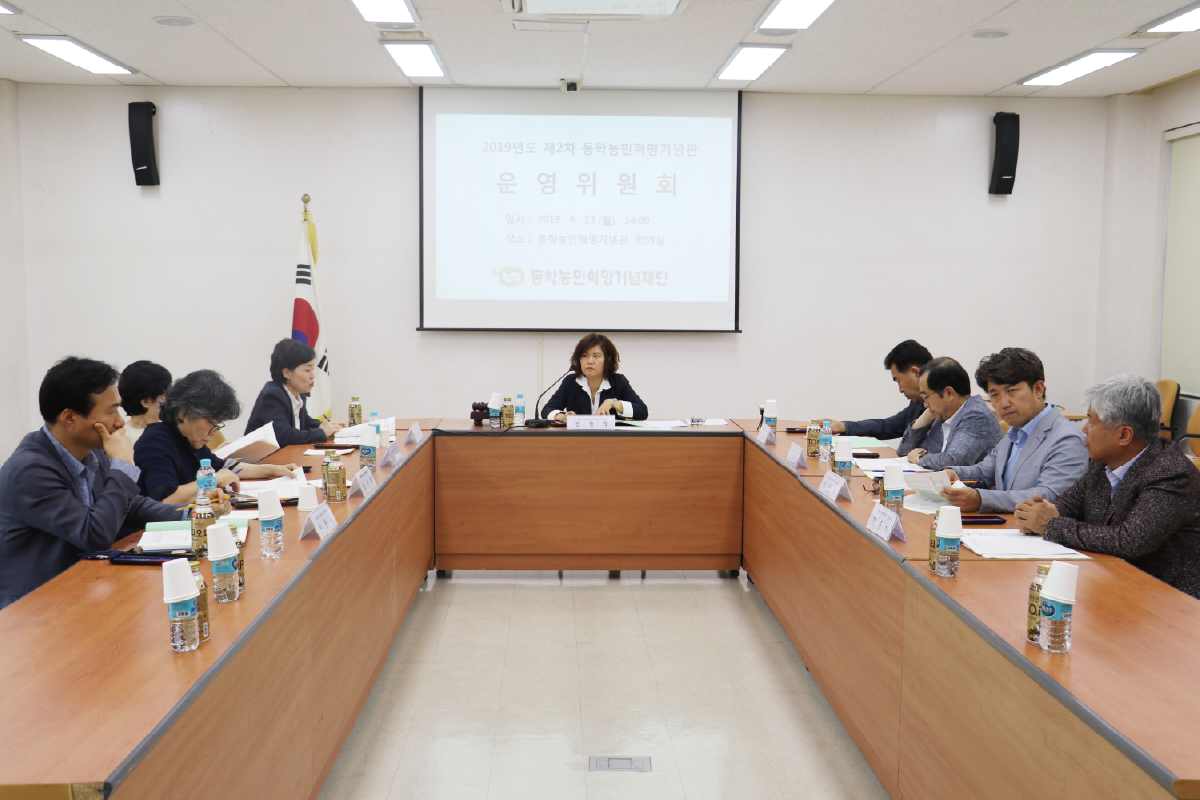 지난 9월 23일 기념재단 교육관 회의실에서 동학농민혁명기념관 운영위원회가 열렸다. 이날 회의에서는 2019년도 주요업무 추진상황 보고 및 2020년도 동학농민혁명기념관 운영 사업계획안을 심의하였다. 주요 심의 내용으로는 전시실 개편, 찾아가는 기념관 사업 및 체험행사 확대, 유물구입, 홍보 등 효율적인 기념관 운영에 대한 다양한 의견이 개진되었다.