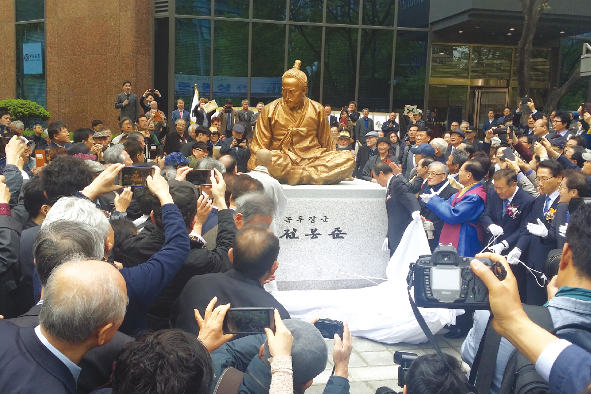 지난 4월 24일, 전봉준 장군 순국 123주기 기일을 맞아 서울 종로 네거리에서 ‘녹두장군 전봉준’ 동상 제막식이 거행되었다. 동상은, 건립부지 확보를 위한 동학농민혁명기념재단의 노력과 건립기금 마련을 위해 범국민적인 모금 활동을 적극적으로 전개한 전봉준장군동상건립위원회(이사장 이이화)의 헌신적인 노력으로 조선시대 전옥서(典獄署) 터(서울 지하철 종각역 5~6번 출구 영풍빌딩 앞)에 세워졌다. 전봉준 장군은 1984년 12월 28일 체포되어 서울로 압송, 의금부에 설치된 권설재판소에서 재판을 받고 1895년 4월 24일 ‘군복기마작변관문자부대시참’(軍服騎馬作變官門者不待時斬)이라는 죄목으로 교수형을 받았다.