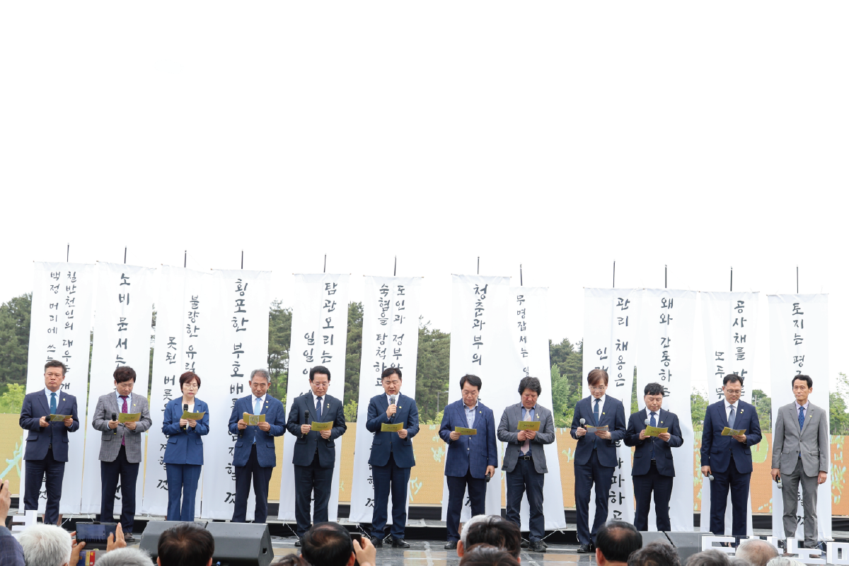 작년에는 뜻깊은 소식도 전해졌습니다. 바로 동학농민혁명 기록물이 유네스코 세계기록유산으로 등재된 것입니다. 동학농민혁명은, 한국인뿐만 아니라 전 세계인이 함께 나누고 지켜나가는 세계사의 소중한 기억이자 유산이 되었습니다. 이제 우리에게는 그 정신과 가치를 미래 세대에 오롯이 전달하는 새로운 숙제가 주어졌습니다.