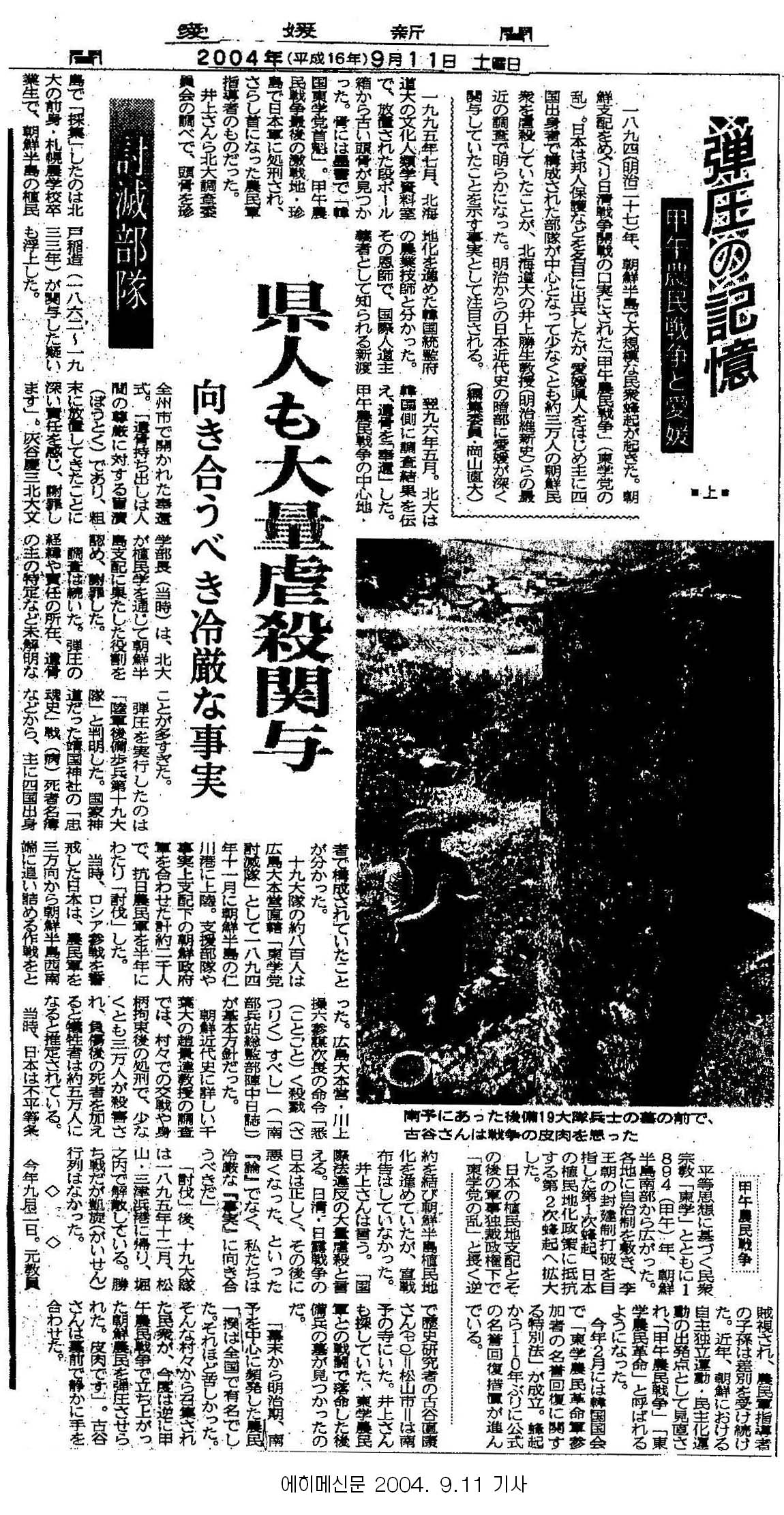 2004년도 에히메(愛媛)현 지역 소재 신문사에서 특집으로 보도된 기사 내용을 번역하여 원문과 함께 기재합니다.