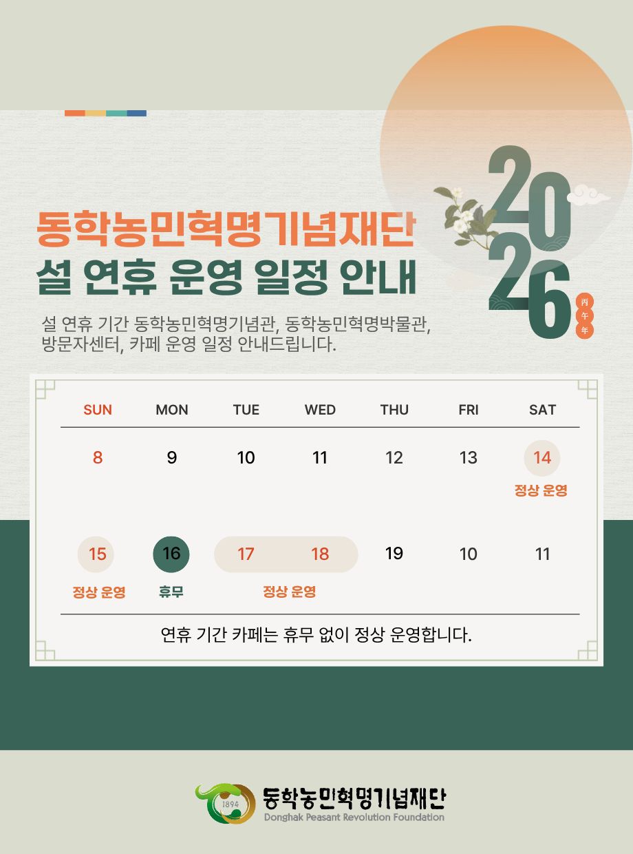 새해 복 많이 받으세요(동학농민혁명기념재단 설 연휴 기간 운영 일정 안내) 공지
