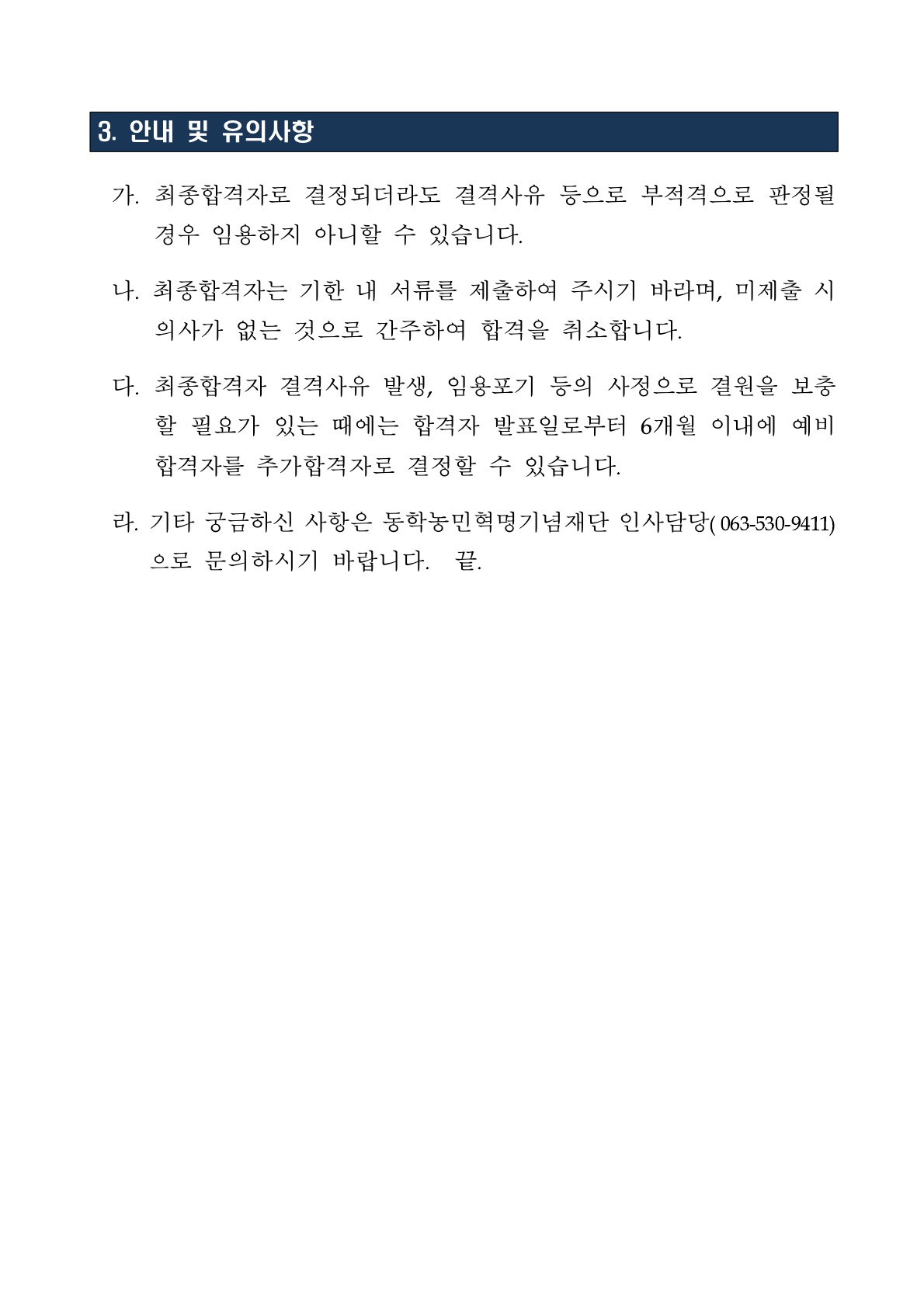 직원 공개채용((기간제_교육체험) 최종 합격자 공고