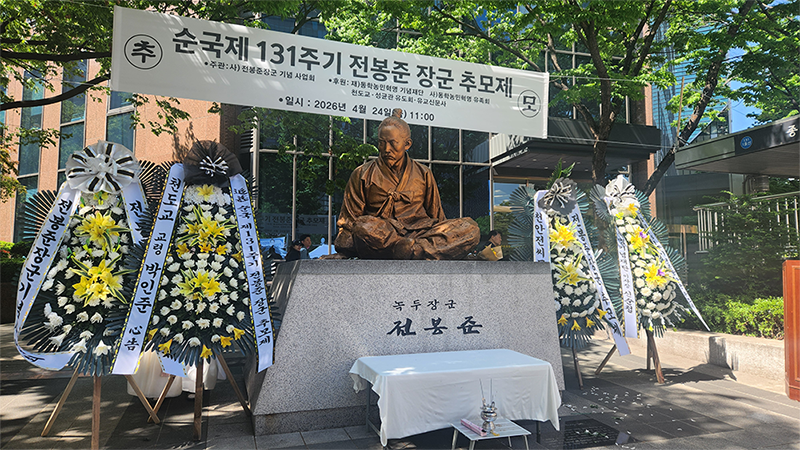 · 행사소개: 4월 24일(금) 진행된 전봉준 장군 순국 제131주기 추모제에는 주요 내빈과 동학농민혁명 관련 단체, 시민 등 약 200명이 참석해 뜻을 함께하였으며, 행사는 추념사와 추모사, 살풀이 및 추모공연, 그리고 참석자들의 헌화와 분향으로 마무리되었다. 이번 추모제는 사람이 사람답게 사는 세상을 위해 동학농민혁명을 이끌다 순국하신 전봉준 장군의 숭고한 희생정신을 기리고 동학농민혁명 정신의 계승과 발전을 다짐하는 뜻깊은 자리로 기억되었다.