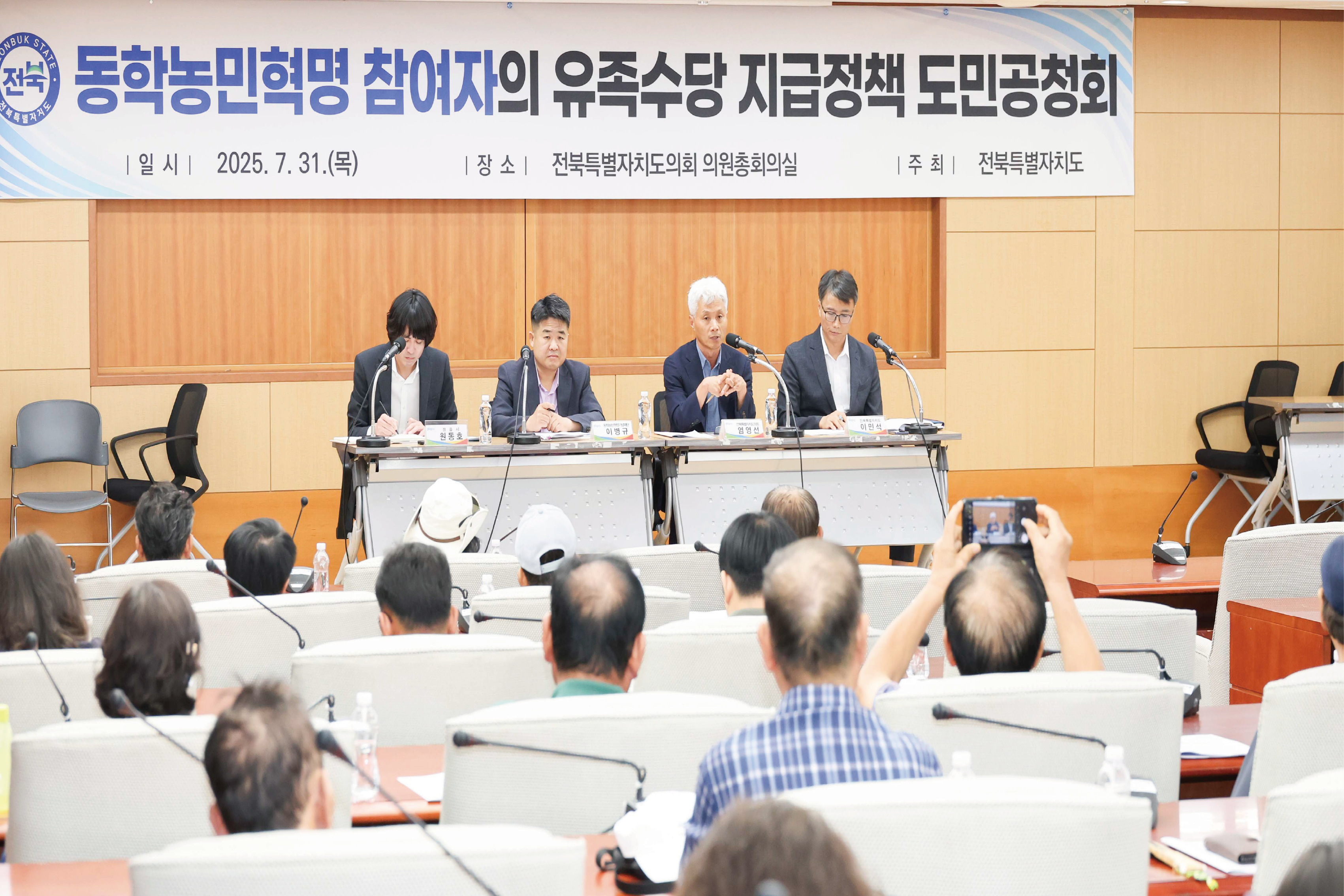 유족 수당 금액은 정읍시의 경우 등록된 모든 유족에게 월 10만 원, 연 120만 원을 지급하고 있다. 전북특별자치도는 유족 전체에게 연 50만 원 지급을 추진 중이다. 생색이다. 이는 지역 간의 형평성 문제를 초래하여 주고도 욕먹을 게 뻔하다. 동학농민혁명은 지역과 대한민국을 넘어 세계사에 빛나는 인류의 자산이다. 전북특별자치도는 그 발생지이고 도민은 그 후예다. "모든 혁명은 불평등의 소산이다." 아리스토텔레스는 말했다. 신분사회 폐지 등 평등사회를 지향하며 봉기한 혁명의 유족이 불평등하게 수당을 받는다면 이는 혁명정신의 훼손 아닌가?