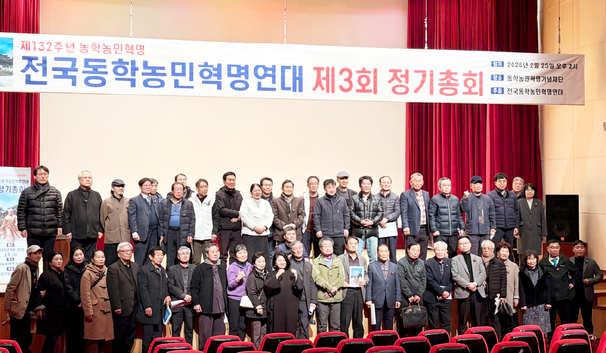 2026년 2월 25일 동학농민혁명기념재단 대강당에서 전국동학농민혁명연대(대표 고재국) 정기총회가 열렸다. 이번 총회는 제3회 정기총회로, 약 60개 단체가 참여하였다. 2025년도 사업을 점검하고 2026년 사업계획 승인, 정관 등 주요 안건을 논의하였으며 단체 간 소통을 넓히고 유대를 다지는 계기가 되었다.