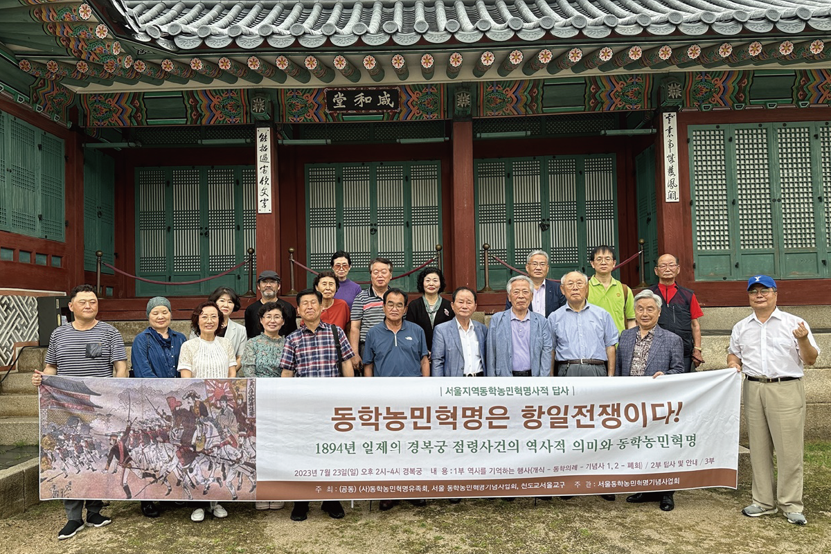 2023년 7월 23일 (사)동학농민혁명유족회, 서울동학농민혁명기념사업회, 천도교서울교구 공동주최로 서울지역의 동학농민혁명 유적지를 답사하는 행사가 열렸다. ‘동학농민혁명은 항일전쟁이다’라는 주제를 내걸고 진행된 이날 답사는 경복궁을 비롯하여 2018년 4월 24일 건립한 ‘녹두장군 전봉준’(서울 종로구 서린동) 동상, 1898년 6월 2일 해월 최시형(동학 2대 교주) 선생이 재판을 받고 ‘좌도난정(左道亂正)’이라는 죄목으로 처형당한 순교 터 ‘서울 종로구 서소문 좌포도청 터’ 등을 답사하였다. 지난 4월에 창립한 서울동학농민혁명기념사업회는 정기적으로 서울지역 동학농민혁명 유적지 답사를 추진하여 서울지역 유적지를 발굴하는 한편 동학농민혁명의 의미를 서울시민들에게 알리는 일에 힘을 기울여나갈 계획이다.