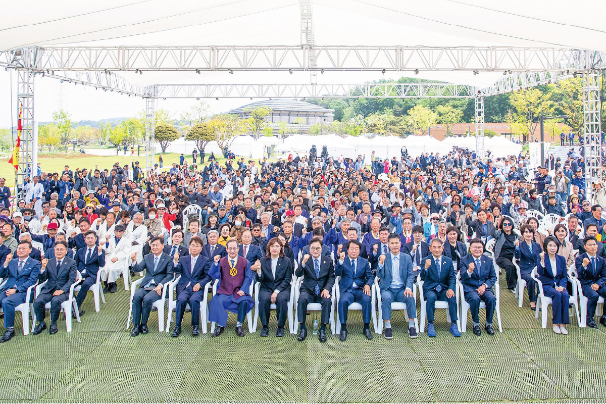 김관영 전북자치도지사, 박인준 천도교 교령, 장미란 문화체육관광부차관, 우원식 국회의장, 문승우 전북자치도의회 의장, 김혜경 여사, 윤준병 국회의원, 강기정 광주광역시장