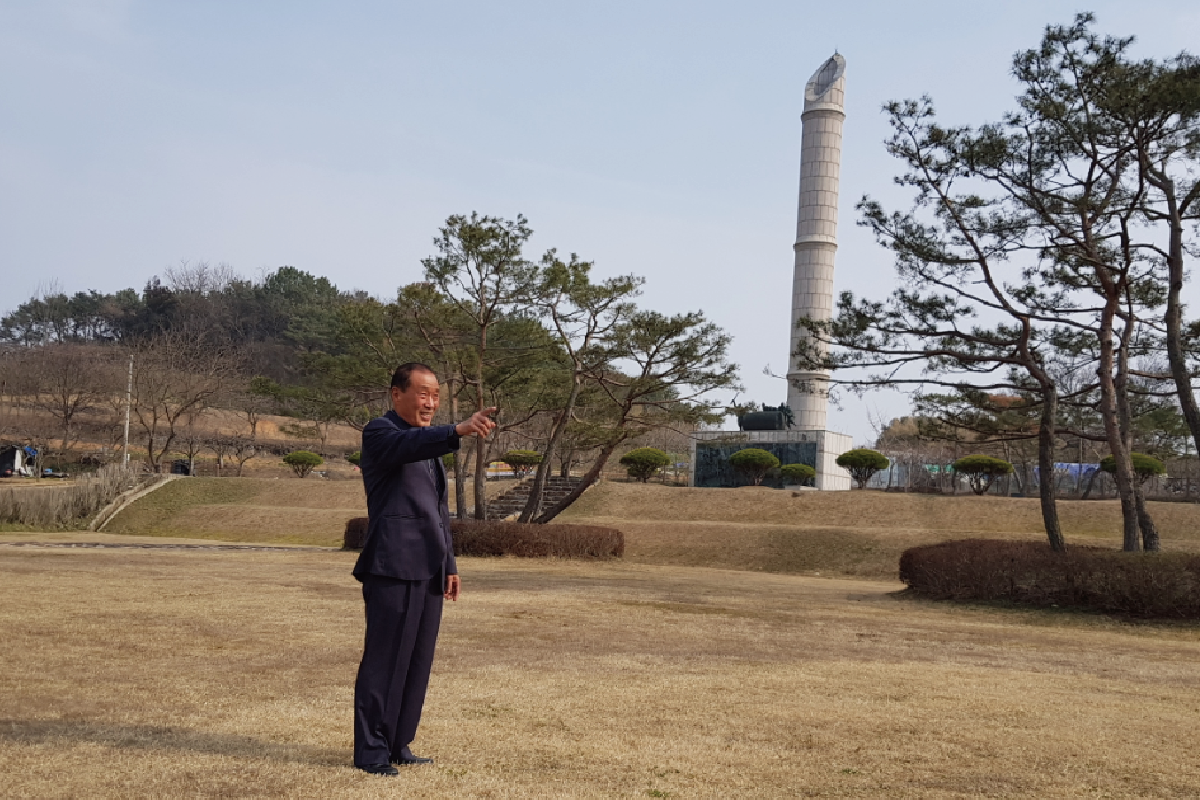 문) 네, 제가 사무국장으로 일했던 전주에 소재한 사단법인 동학농민혁명기념사업회에서 1993년 10월에 역사기행팀을 꾸려서 이곳을 답사했어요. 그때 지금은 고인이신 이이화 선생님과 우윤 선생님, 그리고 신순철 교수님 등이 동행하셨는데, 답사팀이 황룡전적지에 도착하니 전적지 입구에 이상식 교수님이 나와 계시더라구요. 알고 보니 이이화 선생님과 이상식 선생님이 이전부터 가깝게 지내시던 친구분이시더라구요. 하여간 그때 전적지가 정비되기 전이라 황룡전적지는 잡풀로 우거져있었고, 땅은 진펄이라 질척거려서 걸음을 뗄 때마다 조심했던 기억이 새롭습니다. 그랬던 전적지가 지금은 국가 사적으로 아주 말끔하게 정비·단장이 되었는데, 이렇게 되기까지 많은 난관들이 있었지요?