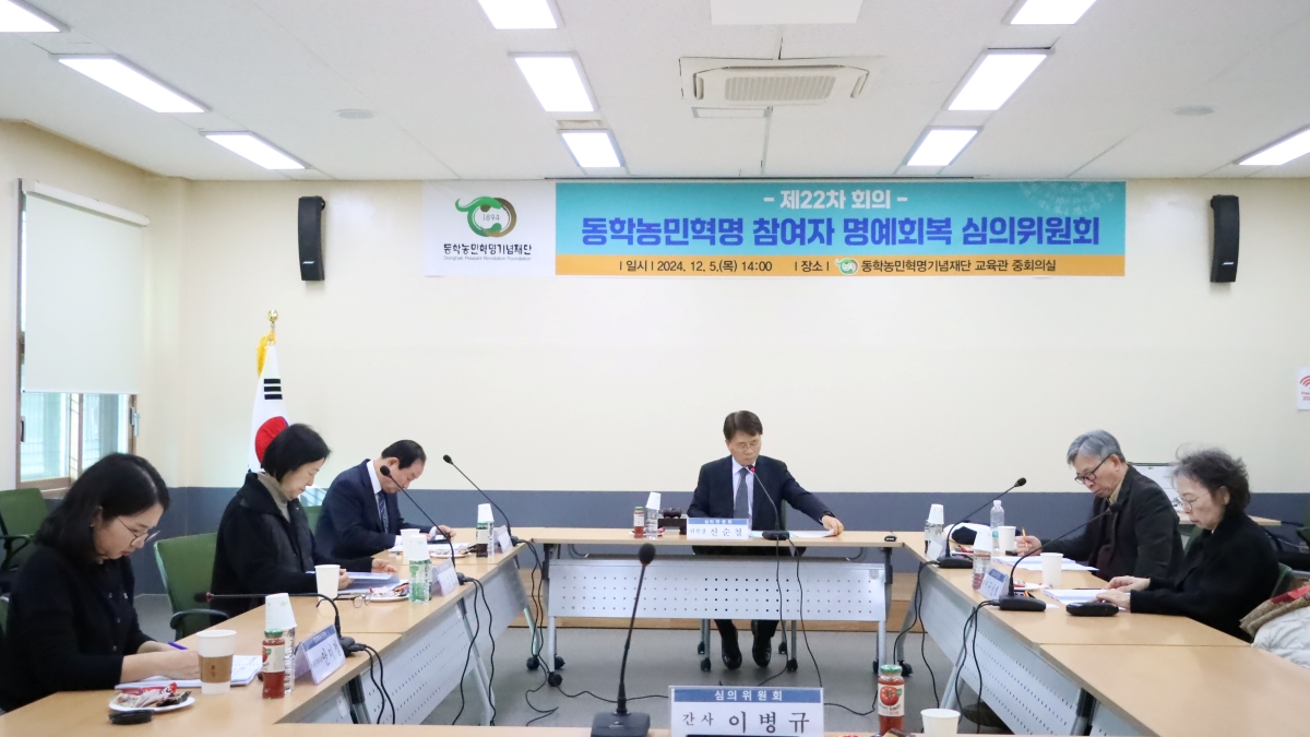 12월 5일 동학농민혁명기념재단 교육관에서 제22차 동학농민혁명 참여자 명예회복 심의위원회가 열렸다. 이날 위원회에는 36건의 동학농민혁명 참여자 및 유족등록 안건이 상정되어 참여자 29명, 유족 21명이 심의, 인정되었다. 이번 심의에서 인정된 인원까지 합하여 현재까지 등록된 참여자는 3,908명, 유족은 13,445명이다.