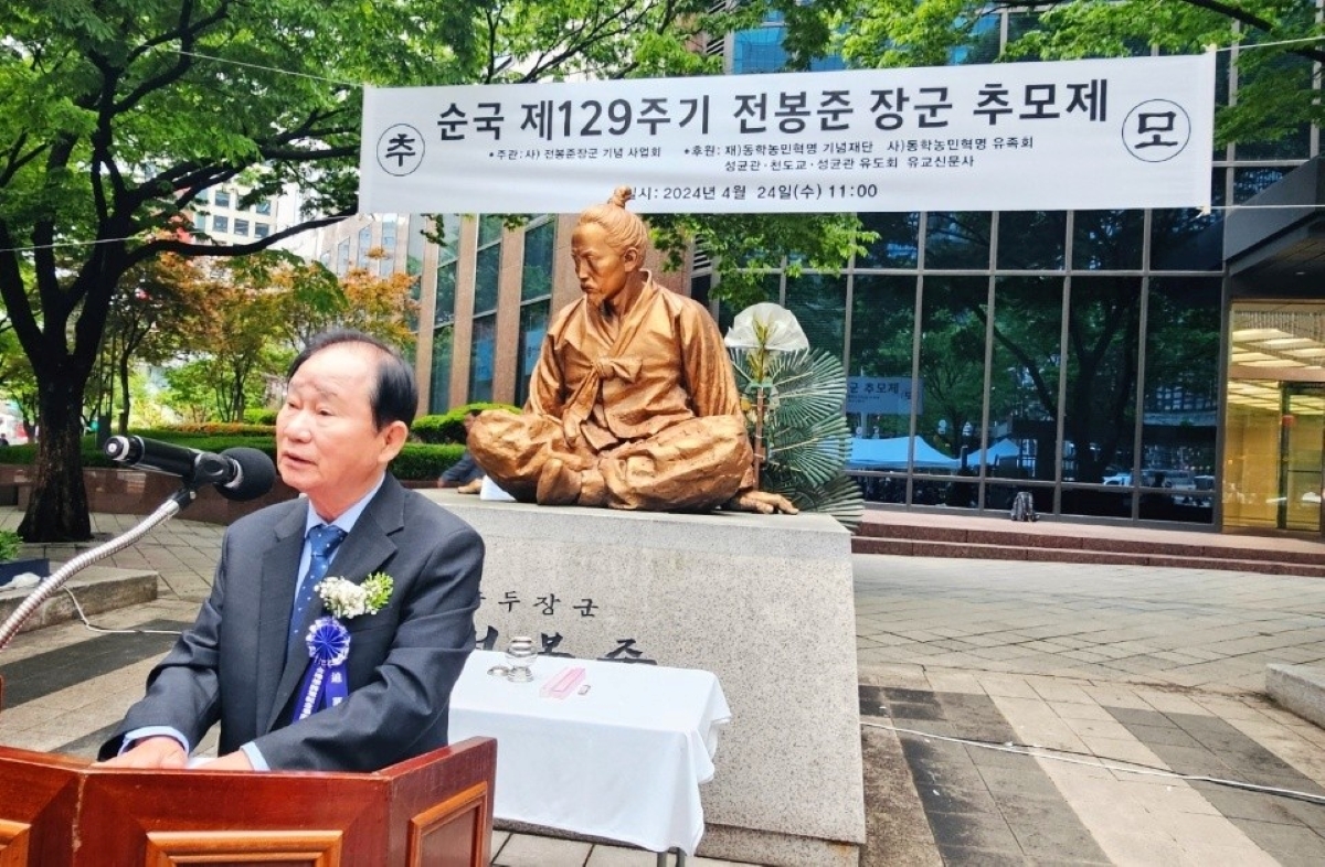순국 제129주기 전봉준 장군 추모제에서 추모사하는 주영채 회장