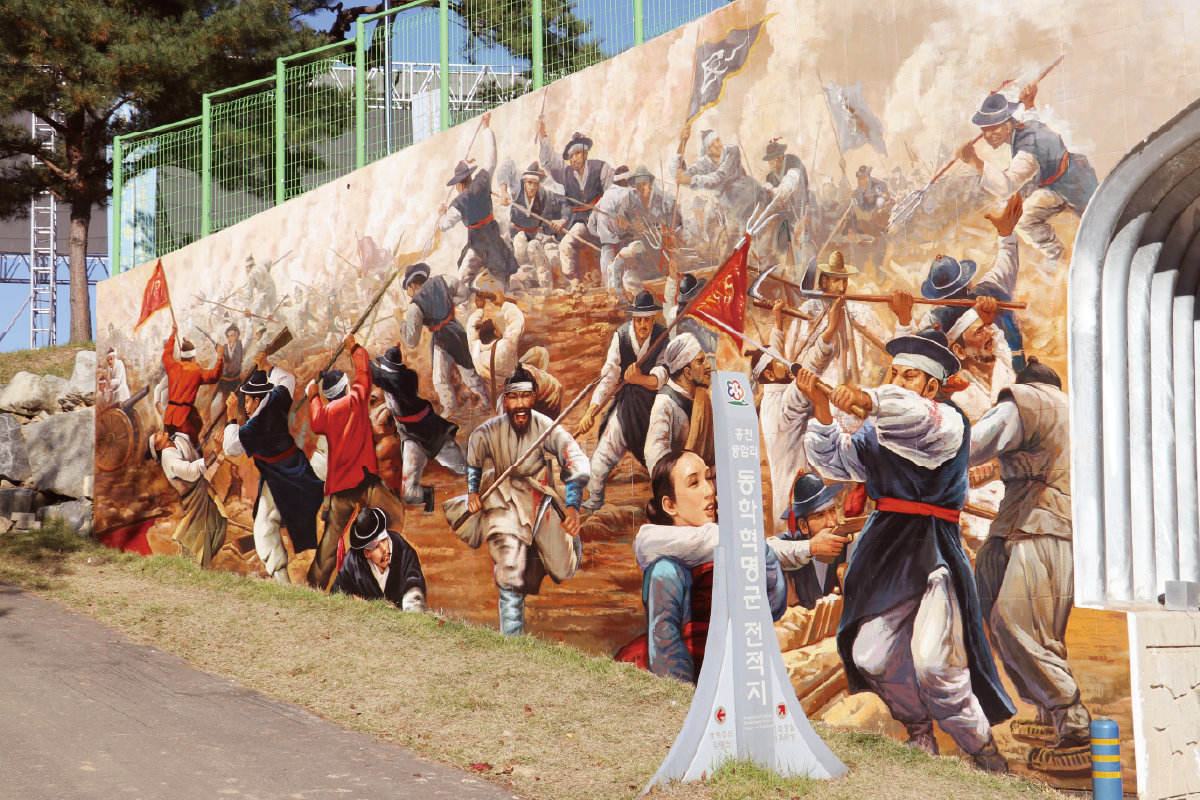 제124주년 동학농민혁명 기념대회가 지난 10월 10일과 11일 이틀간 강원도 홍천군 서석면 자작고개전적지 「동학혁명군위령탑」에서 “동학농민혁명, 평화의 꽃으로 활짝 피어라”라는 주제로 펼쳐졌다. 자작고개전적지는 124년 전 1894년 11월 20일(양)과 21일 동학농민군이 민보군을 맞아 치열하게 전투를 벌여 농민군 800여명이 전사한 곳으로, 이곳에는 희생된 농민군의 넋을 기리기 위해 1977년에 건립한 「동학혁명군위령탑」이 서 있다.
