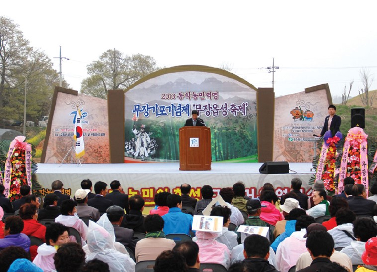 지난 4월 25일(목) 고창 공음면과 무장읍성에서 무장기포기념제가 열렸다. 이번 기념제는 무장읍성축제위원회(위원장 진평)가 주최하였으며 '동학농민혁명군의 발자취와 무장읍성 무혈입성의 함성'이라는 주제로 진행되었다. 김인호 고창부군수, 고창군 의회, 지역기념사업회 대표 등 내빈과 군민 1000여명은 고창 공음면에서 무장기포 출정식을 가지고 약 8km의 진격로를 따라 무장읍성에 도착하여 무혈입성을 재현하였다. 무장읍성에서는 식전공연과 녹두대상 시상, 격려사 및 축사가 이어졌다. 녹두대상은 전북일보가 발간한 ‘동학농민혁명 100년 – 혁명의 들불, 그 황톳길의 역사 찾기’의 집필진(김은정, 문경민, 김원용)이 수상하였다.