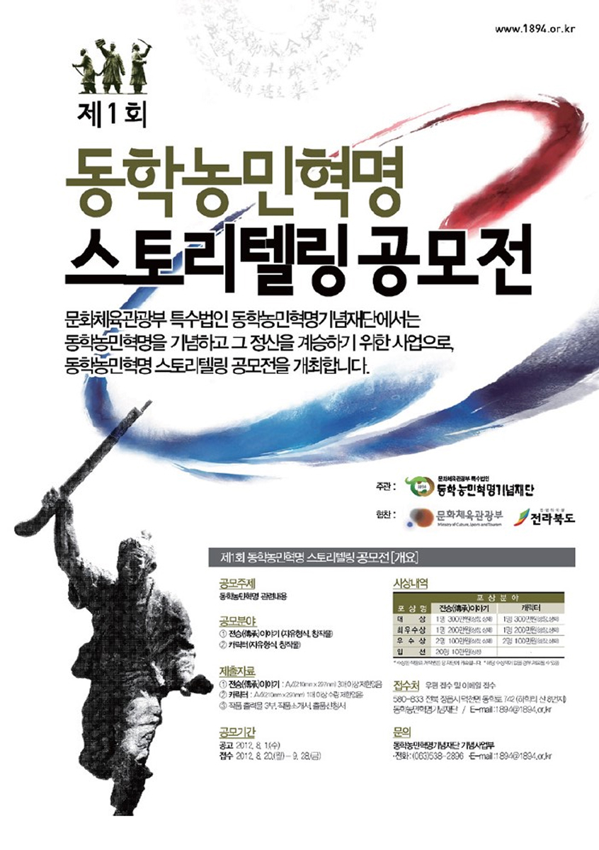 동학농민혁명 스토리텔링 공모전은 동학농민혁명에 대한 다양한 스토리를 발굴하고 스토리텔링을 통한 콘텐츠를 생산하여 동학농민혁명에 대한 새로운 관심을 창출하기 위하여 2012년 8월부터 9월까지 진행되었다.