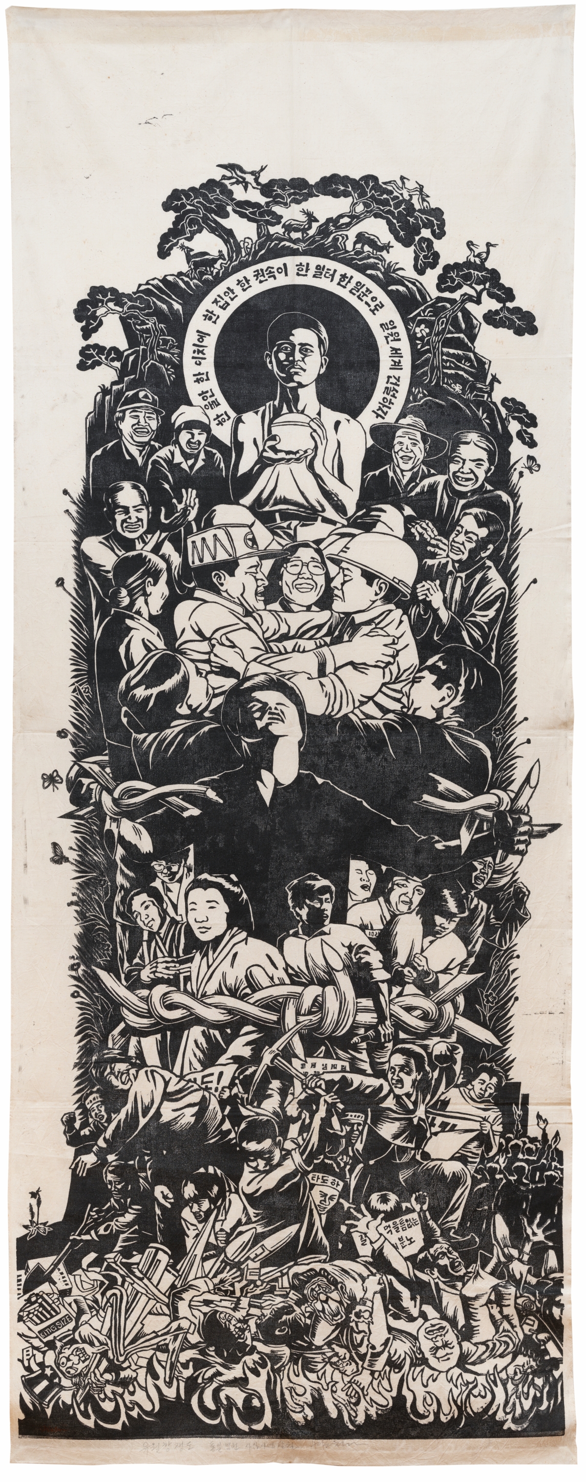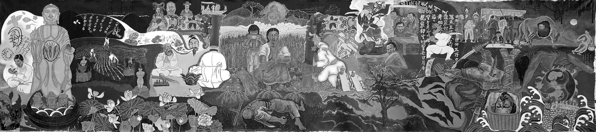 광주비엔날레 기간에 열리는 광주시립미술관 특별전 ‘시천여민-동학에서 오월로’는 올해 동학 주제 전시를 결산하는 전시가 될 것이다. 광주시립미술관 김준기 관장은 작년부터 전국의 큐레이터, 작가들과 동학 주제 답사를 다니며 올해의 주제 전시를 예감하였다. 3월부터 이어진 순회전시를 관장과 담당 큐레이터가 충실히 관찰하였다. 40여명의 작가가 참여하는 전시는 올해 열리는 주제 전시 가운데 가장 큰 규모를 가졌다. 일본 민중미술의 대표작가 도미야마 다에코를 비롯한 국외작가의 작품도 참여한다. 작가 홍성담은 앞선 순회전시에 걸린 9미터 세로 걸개그림 ‘시천주조화정(2002)’과 함께 오월의 정신을 구현한 2024년 신작을 함께 건다. 2폭의 세로 걸개그림이 동학에서 오월로 이어지는 이야기를 어떻게 들려줄지 몹시 설렌다. 우리 모두 그림틀을 타고 동학농민혁명의 언덕, 골짜기, 틈을 타고 노니세. 동학농민혁명의 들판과 우리 광장은 이어져 있다.